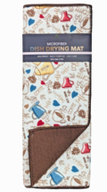 Coffee Pot and Cups Dish Drying Mat Reversible to Brown Farmhouse Barista Gift