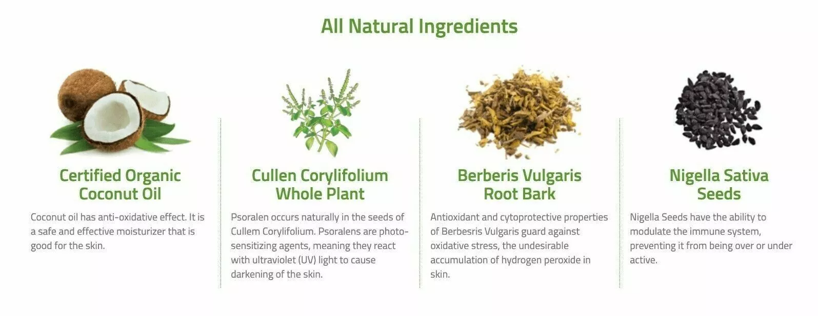 Natural extract of herbs plants formulated in Vitiligo Organics? absorbs into the skin and helps melanocytes to resume their natural function resulting uniform natural skin color.
