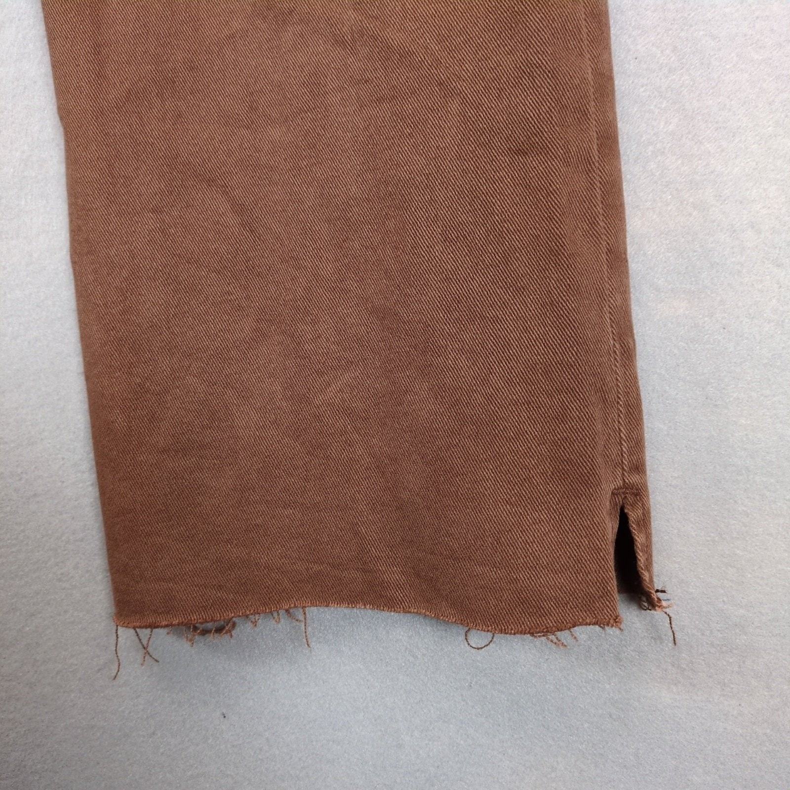 * Features: Stretch denim, Espresso brown wash, 5-pocket, zipper fly with gunmetal branded button, wide leg, belt loops, high rise, raw cut hem with slit, style RDP5507X