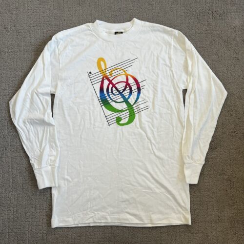 VTG Apple Macintosh IIGS College L/S T Shirt Sz M White Rainbow Treble Clef NWOT