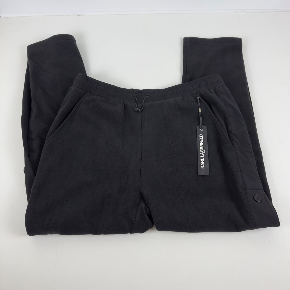 Karl Lagerfield Men's Fleece Button Detailed Track Pants, Black-XL