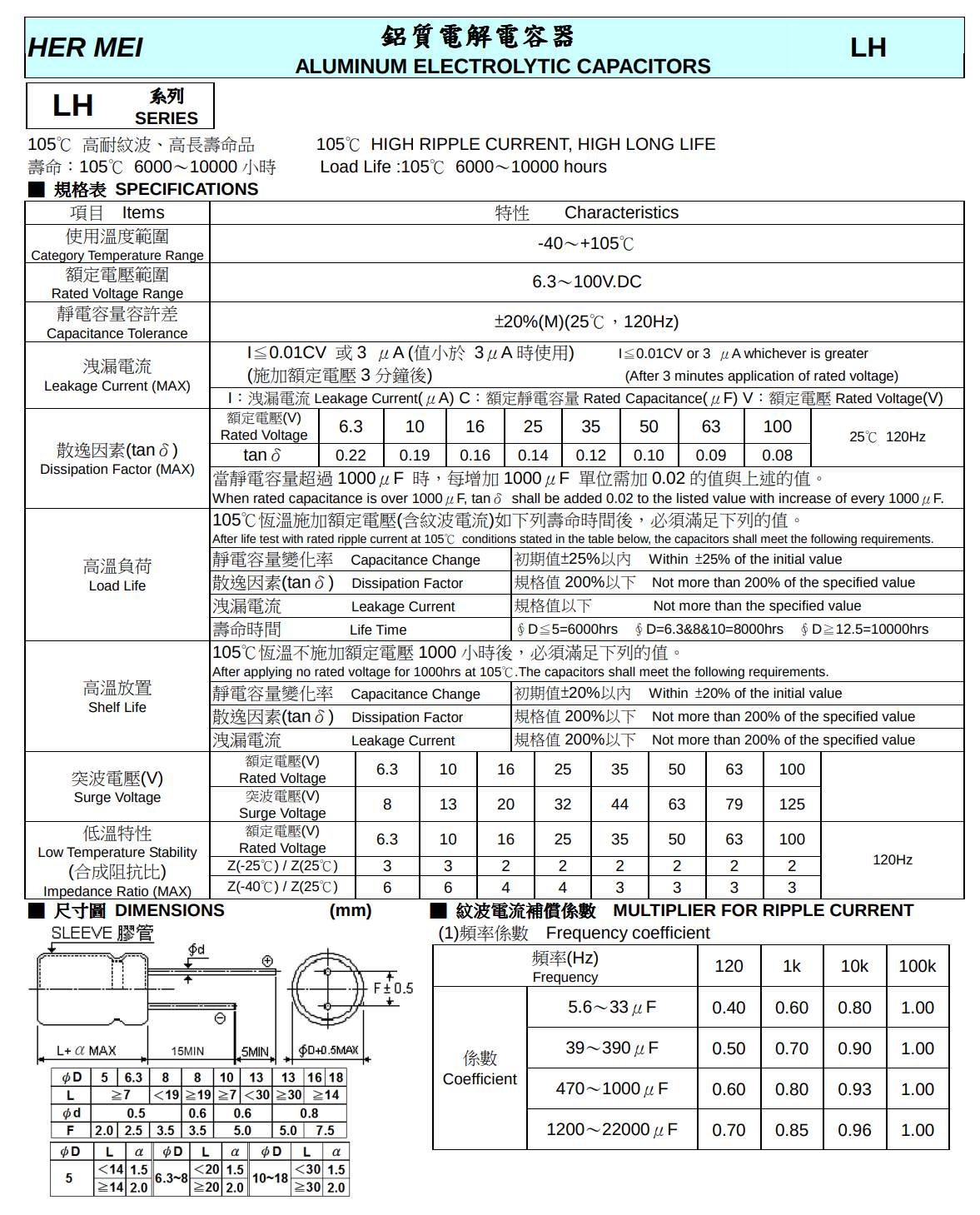 12 Pieces - LHR471M1HJ20 HER MEI 470uF 50V 12.5x20mm Aluminum Electrolytic Radial Capacitor LS:5mm 10khr 105C High Ripple Long Life