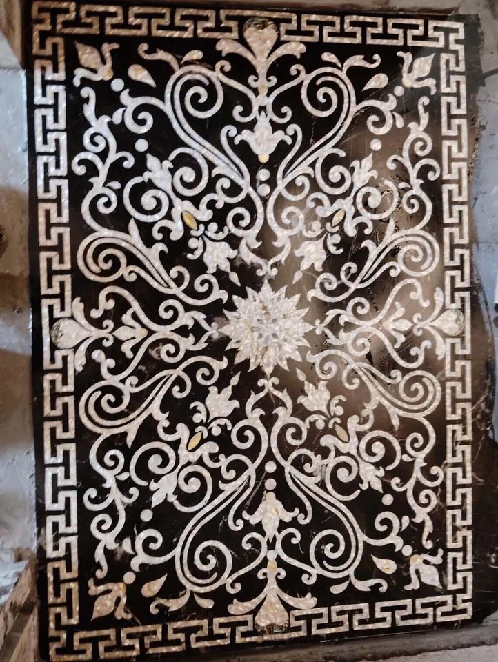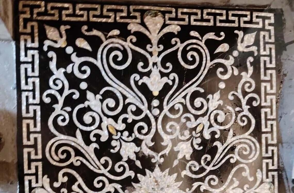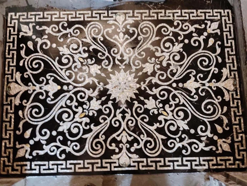 Black Marble Dining Table Overly Work Precious Stone Handmade Art Furniture Deco