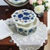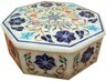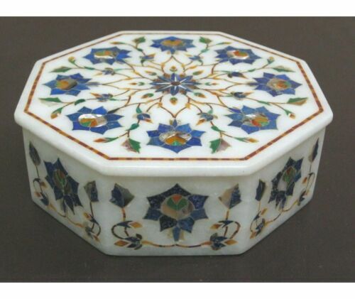 Octagon White Marble with Lapis Stone Handmade Jewelry Storage Box Modern Arts