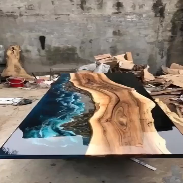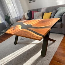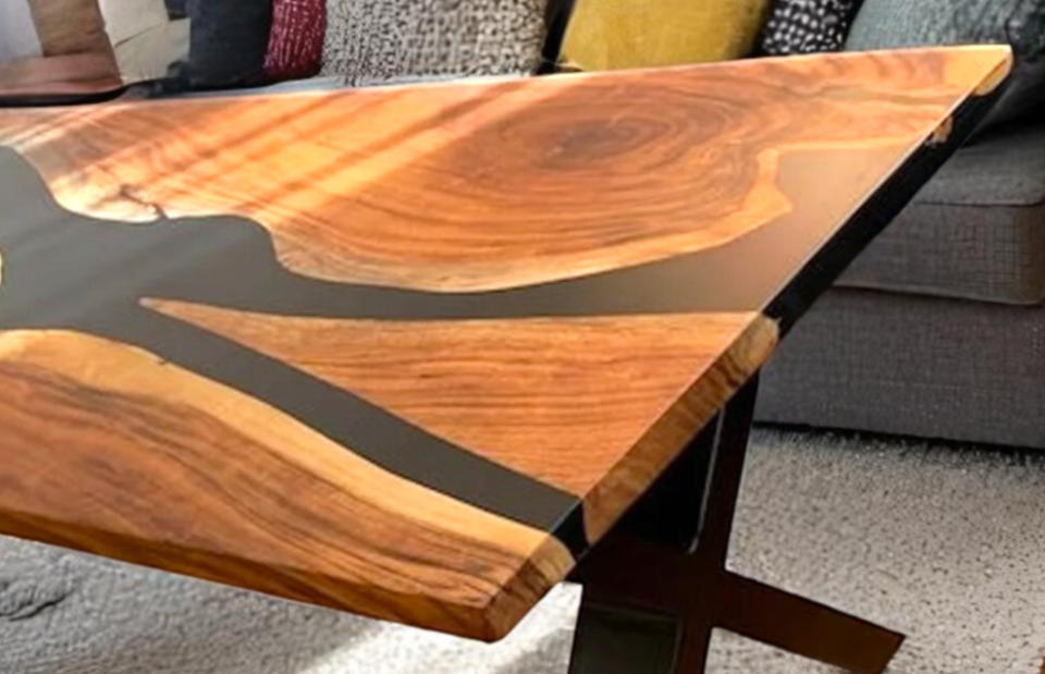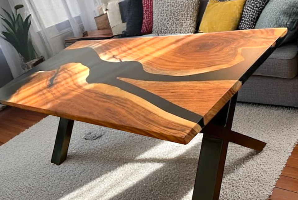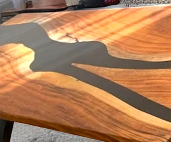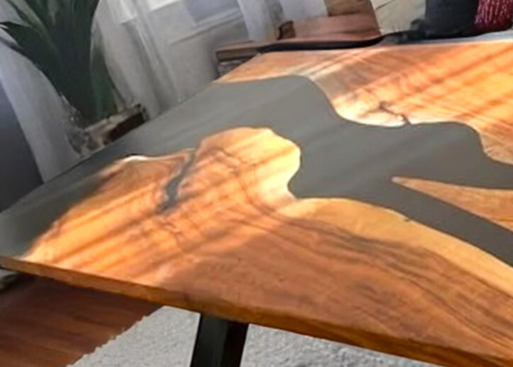 Our epoxy tables are custom-made, and we strive to use the same type of wood as depicted in our advertising pictures. However, it is not always possible to find an exact match, which may result in slight variations in the epoxy color and wood grain pattern.