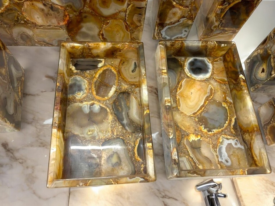 Brown Agate Stone Bathroom Set Handmade Bathroom Accessories Unique Vanity Tops