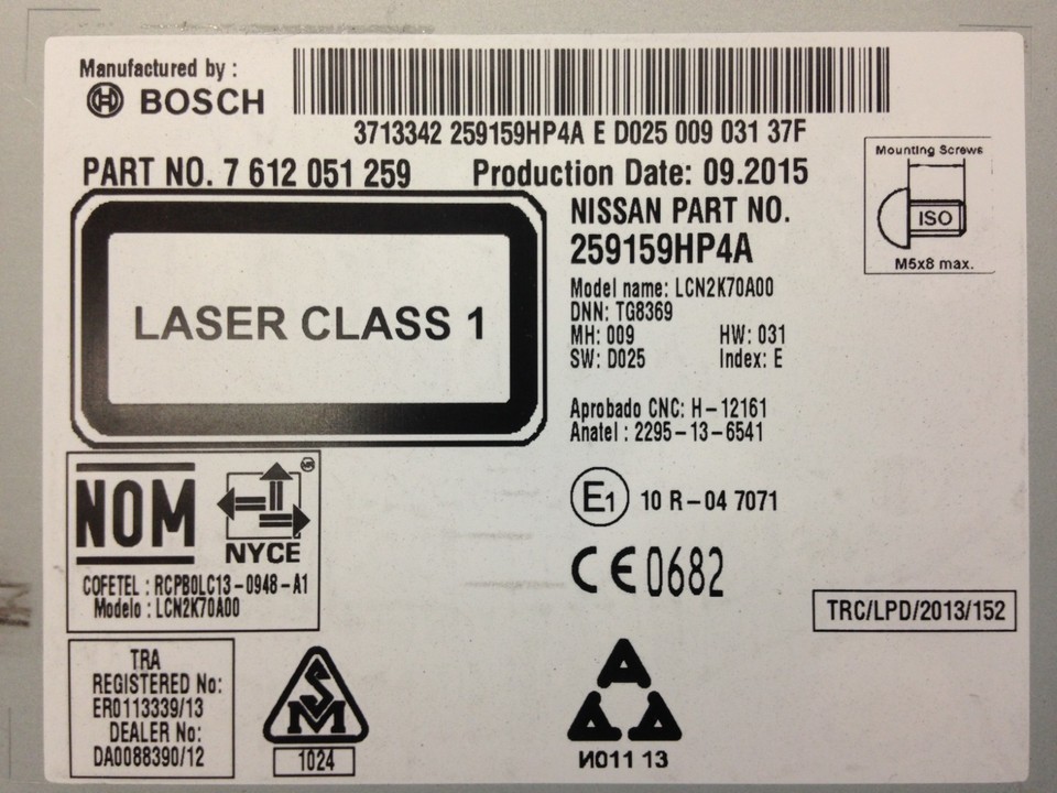 25915-9HP4A, OEM stereo, 7612051259, Bosch, 2015 |