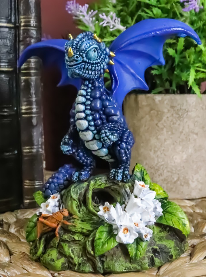 Ebros Fantasy Green Thumb Blueberry Indigo Blue Dragon Statue Fairy Garden Collectible