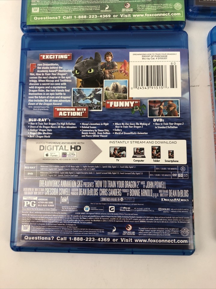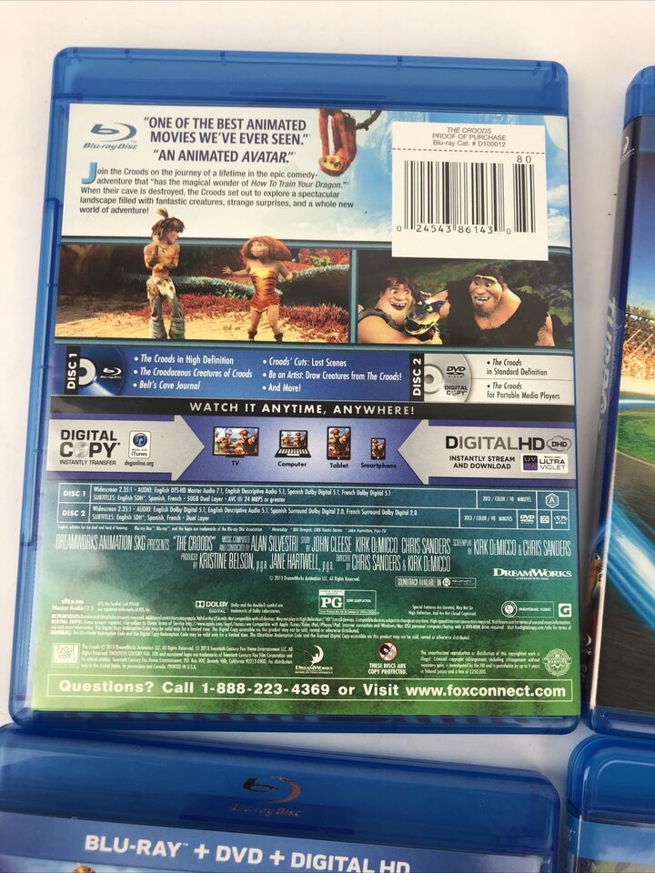 Animated lot of 4 Blu-Ray movies DVD The Croods, Dragon 2, Turbo, Cloudy with a Chance of Meatballs 2