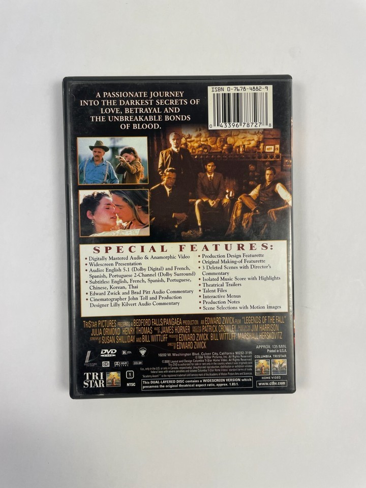 - Featuring: Legend of the Fall 1994 Academy Award Winner Cinematography DVD Movie - DVD is Clean. Cases have some Scuffs, Scratches, and Cracks - Free Shipping -Free Returns