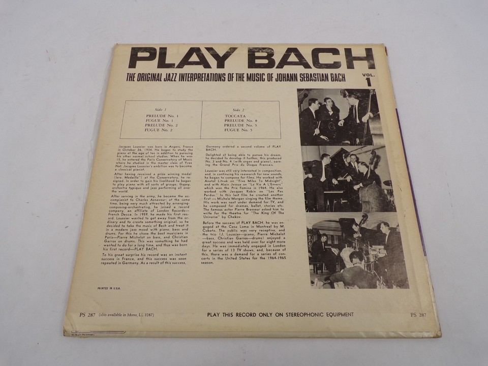 - Featuring: Play Bach The Original Jazz Interpretations Of The Music Of Johann Sebastian Bac - Please review images for details CD is in excellent condition unless otherwise stated - Prelude 1 - Fugue 1 - Prelude 2 - Fugue 2 - Toccata - Prelude 8 - Prelude 5 - Fugue 5