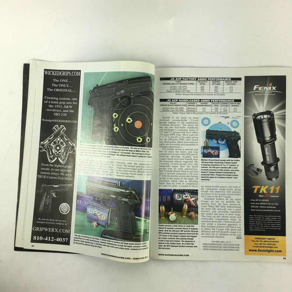 -Featuring: February 2011 Guns Magazine Remington R-15/30 .30 Remar 4X-12X .45 ACP -Magazine is complete and in nice condition -Showing only light to moderate wear