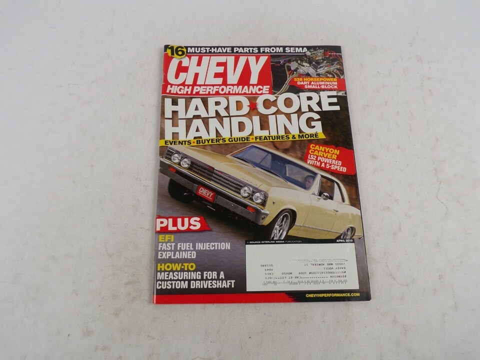 Featuring: April 2010 Chevy High Performance Hard Core Handling Mut-Have Parts From Sema - Plus EFI Fast Fuel Injection Explained - How-To Measuring For A Custom Driveshaft - Magazine is complete and in nice condition - Showing only light to moderate wear