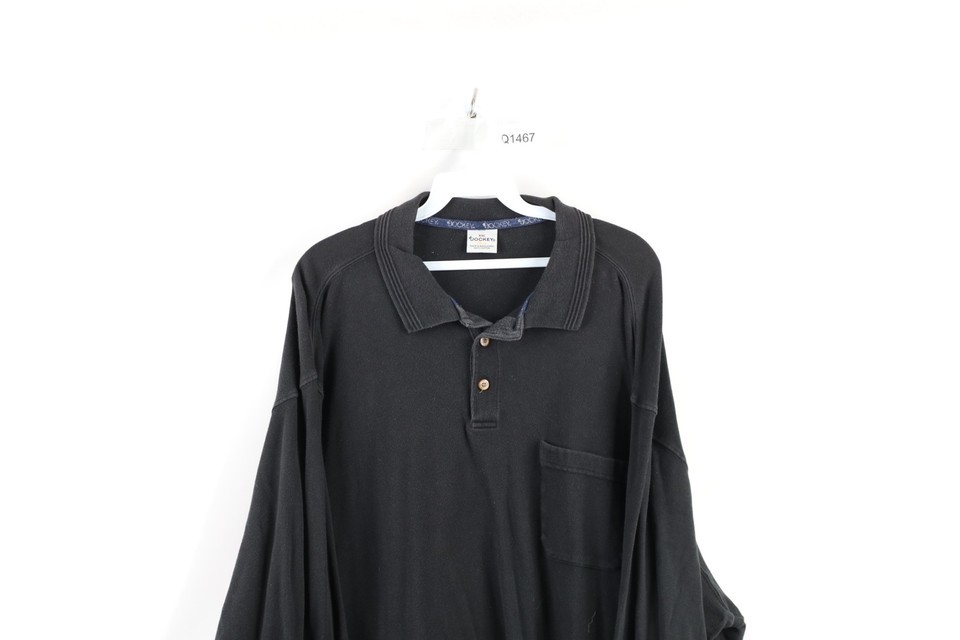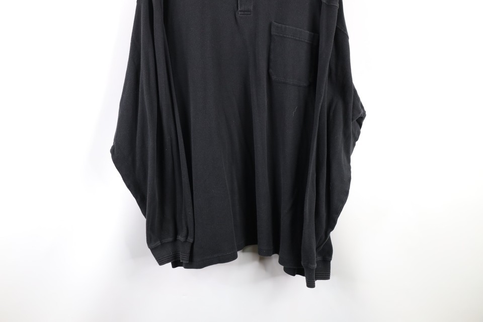 Vintage 90s Streetwear Mens 2XL XXL Faded Collared Long Sleeve Polo Shirt Black