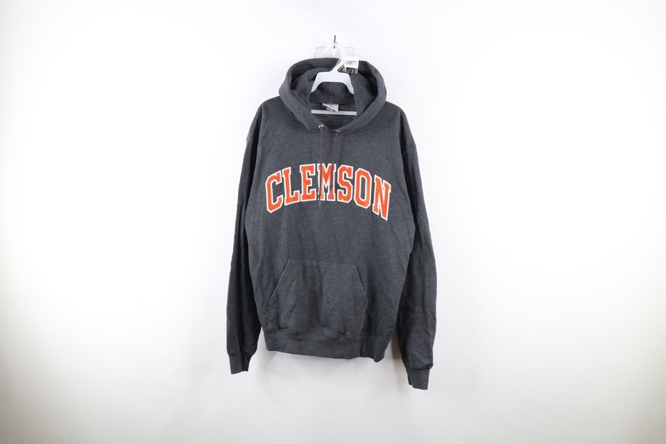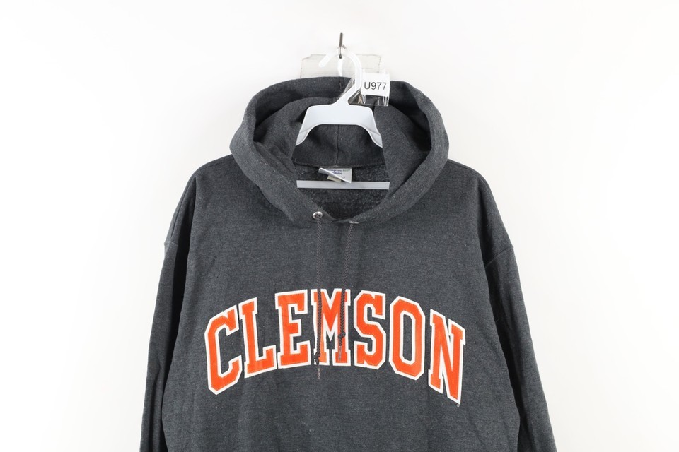 Vintage Champion Mens Medium Distressed Spell Out Clemson University Hoodie Gray
