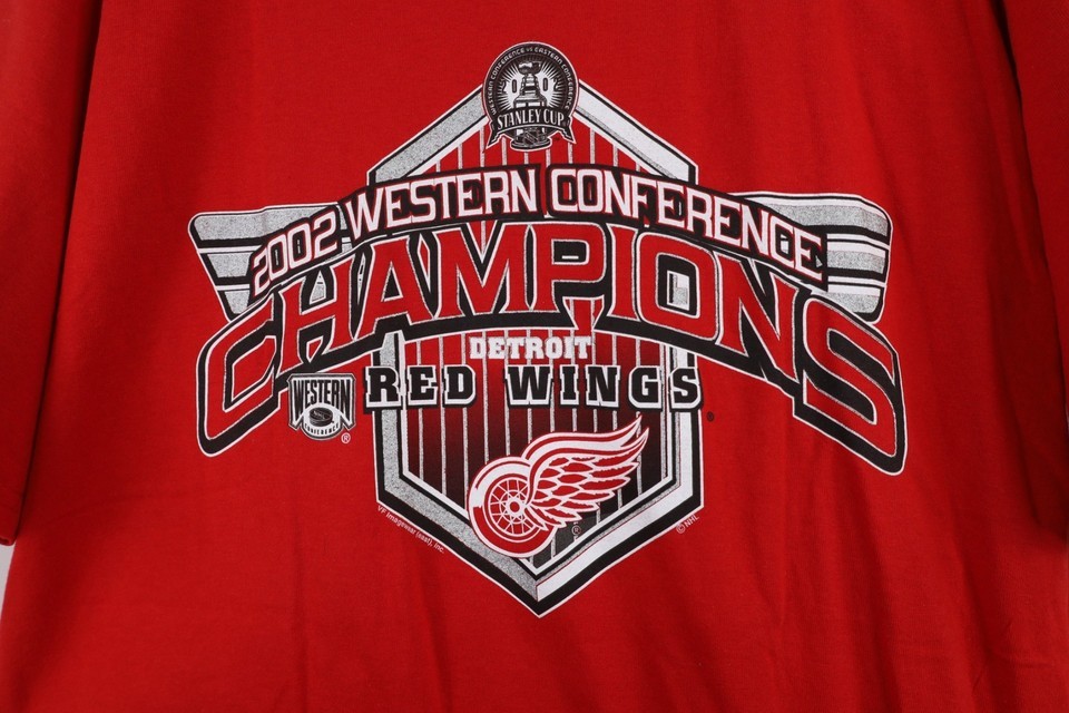 NOS Vintage Mens Medium 2002 Conference Champs Detroit Red Wings Hockey T-Shirt