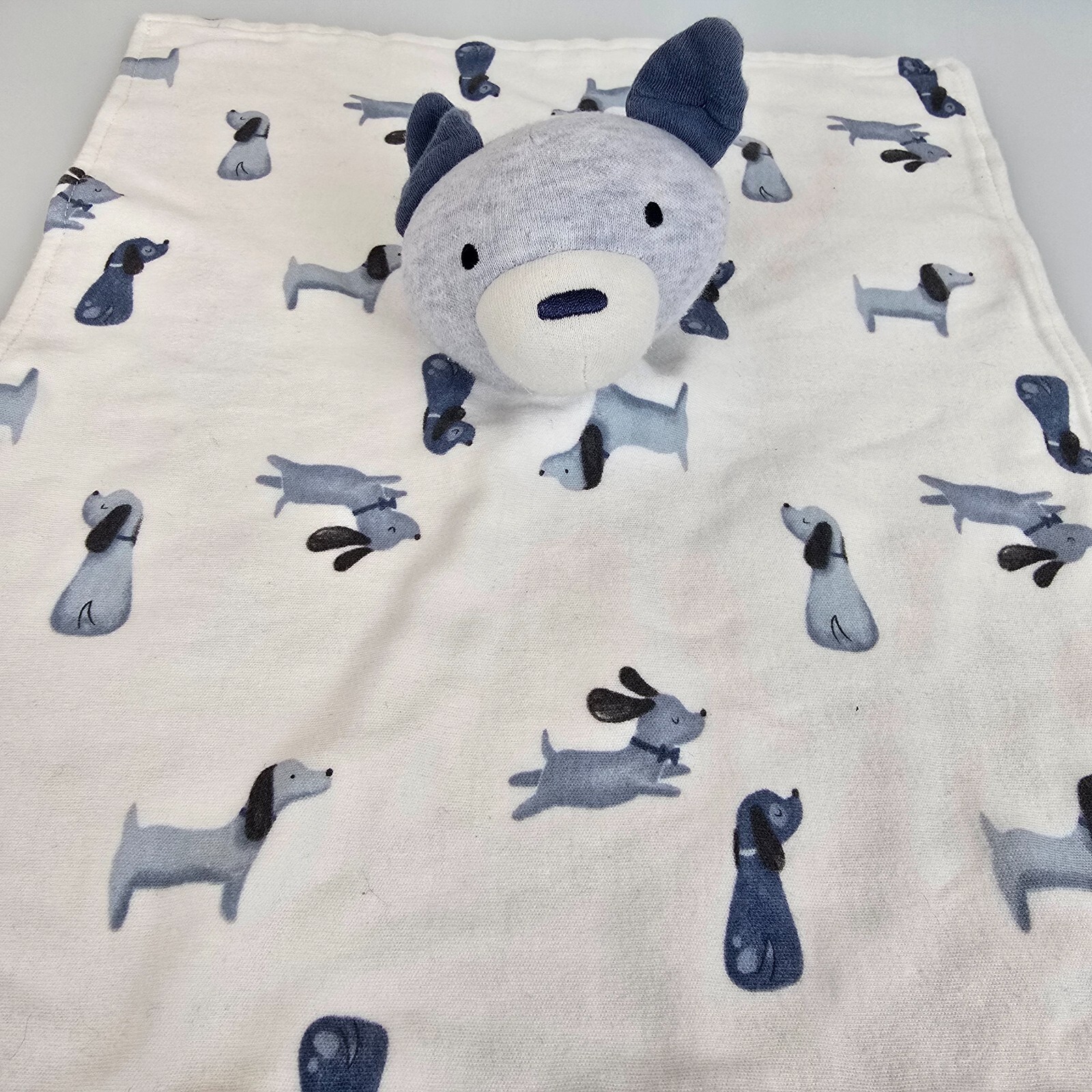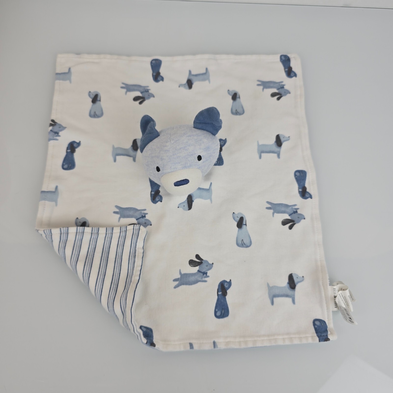 Rabbit and Bear Organic Emily Oliver Security Blanket Blue White Dog Stripe