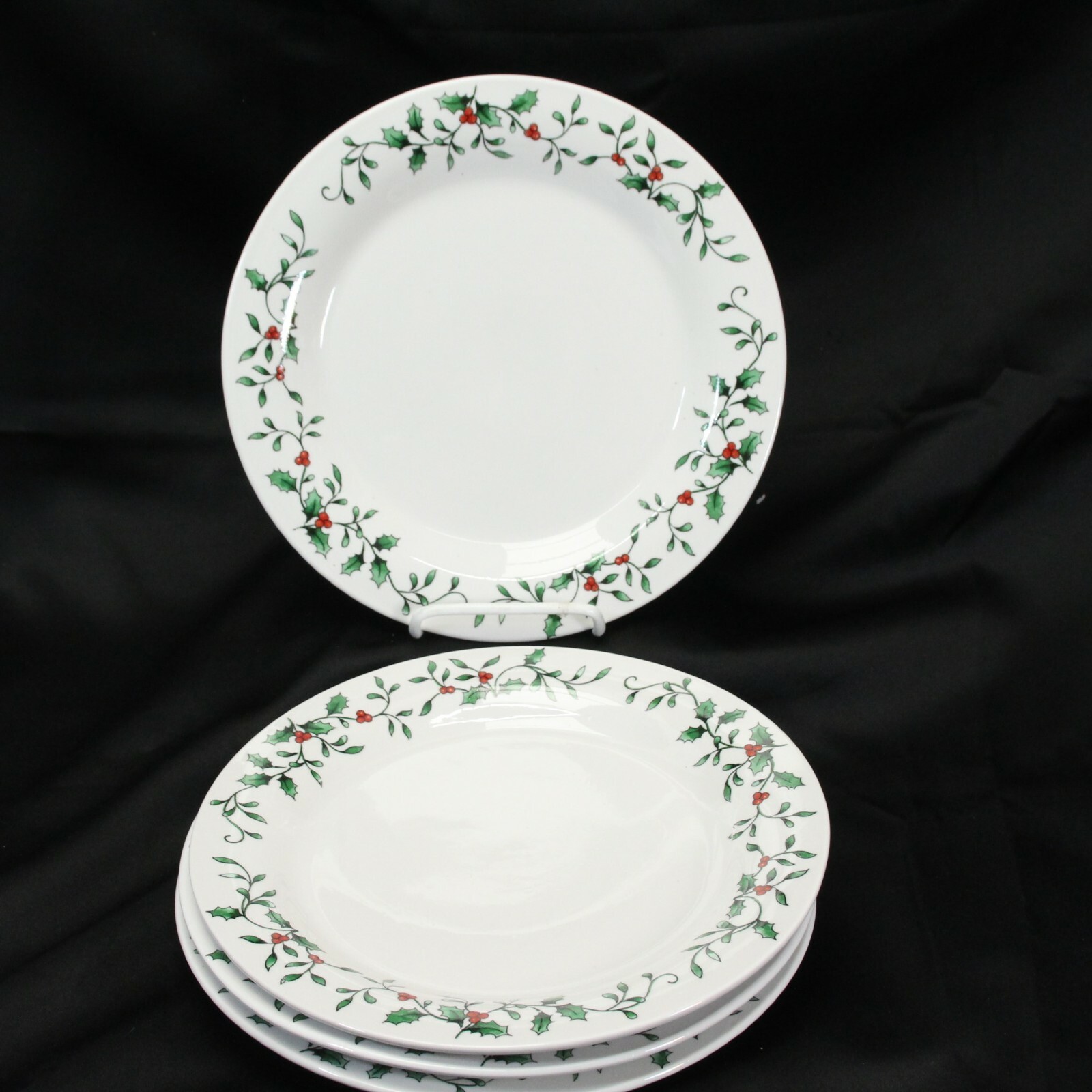 Royal Seasons Holly Berries Dinner Plates Christmas 10-1/8" Lot of 4 Xmas