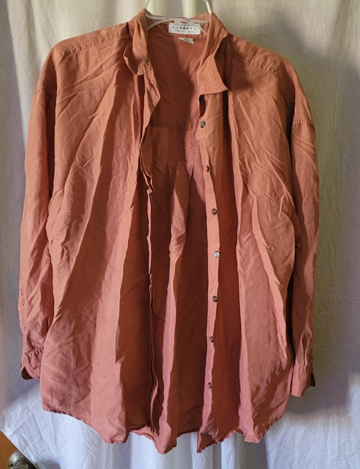 Women's Express Size Small 100% Silk Button-Up Blouse Long Sleeve Coral Color