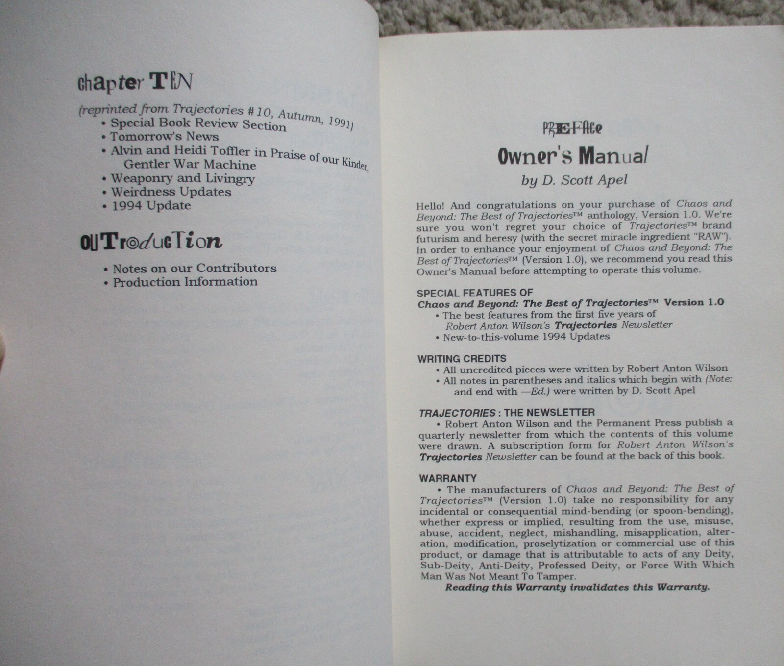 CHAOS AND BEYOND: THE BEST OF TRAJECTORIES (1994) Robert Anton Wilson - 1st TPB