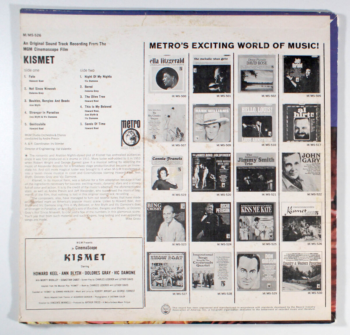 Kismet (1955) Vinyl LP MGM Film Soundtrack, Howard Keel