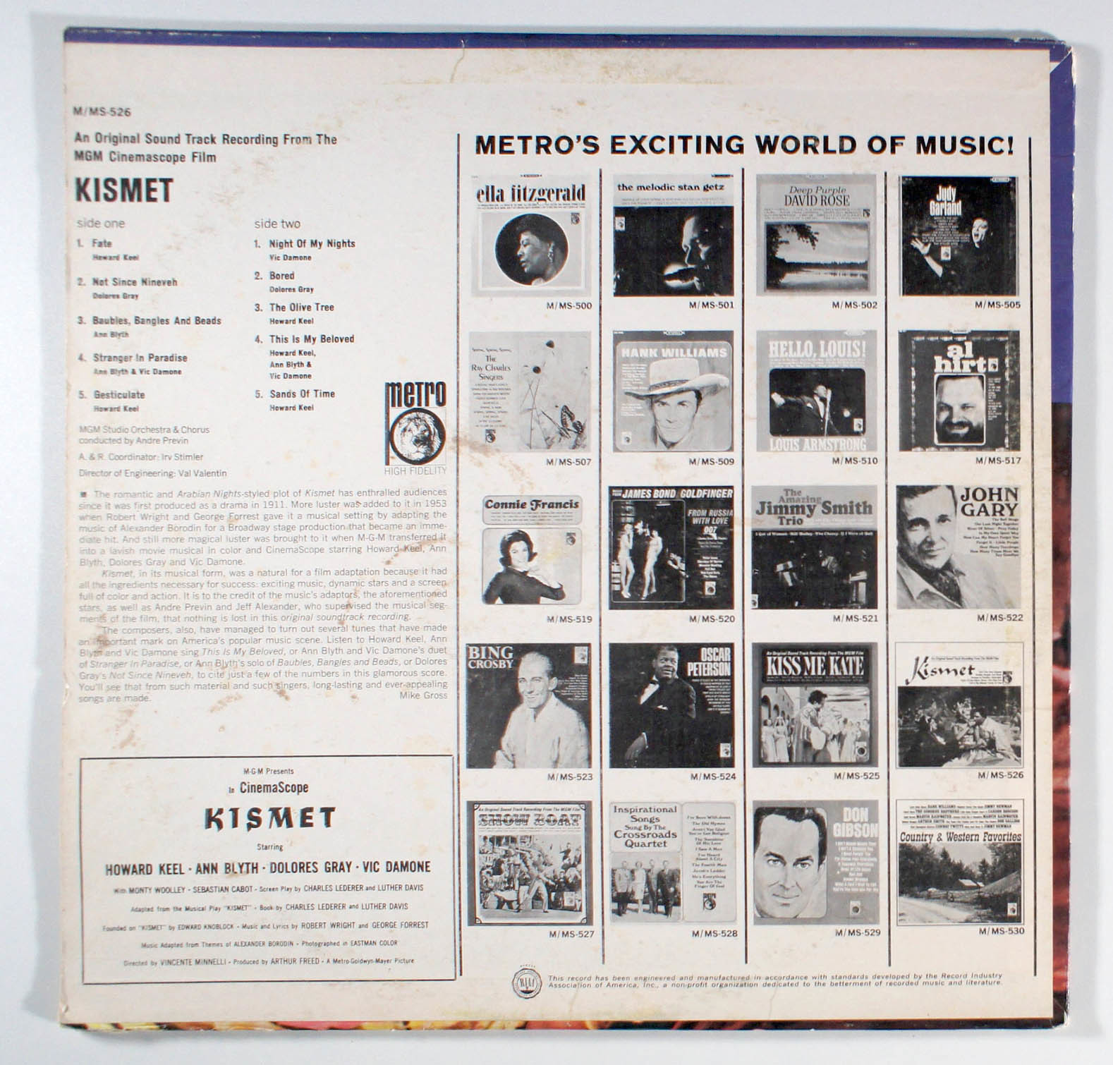 Kismet (1955) Vinyl LP โข MGM Film Soundtrack, Howard Keel
