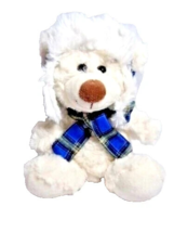 Winter Polar Bear Plush Blue Plaid Scarf Fluffy Winter Hat Soft Cream 8-In Gift