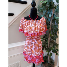 Jessica Simpson Mini Dress Women M Pink Orange Floral Ruffle Off The Shoulder