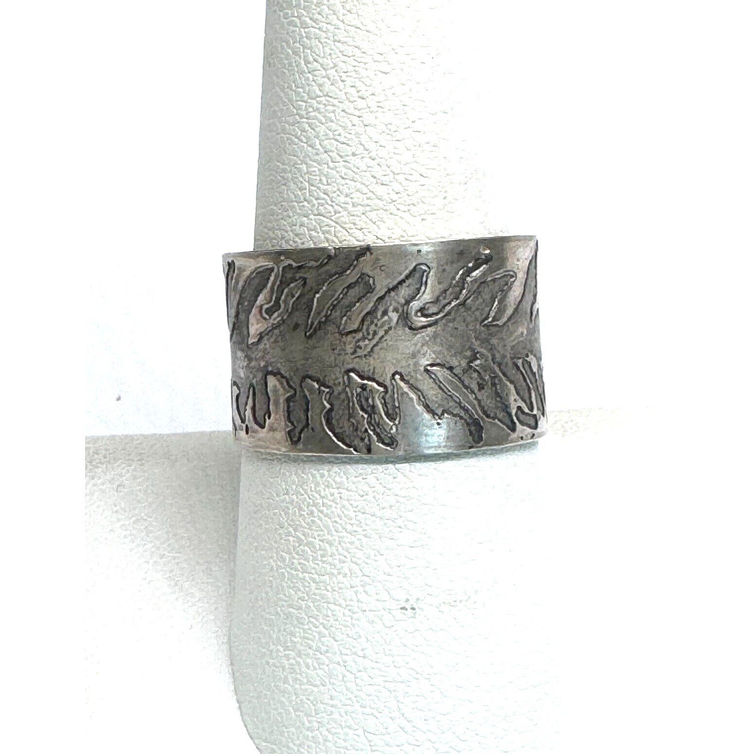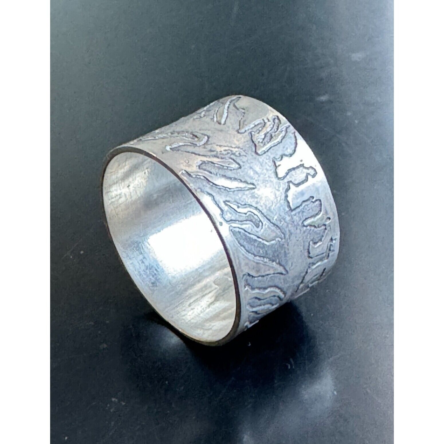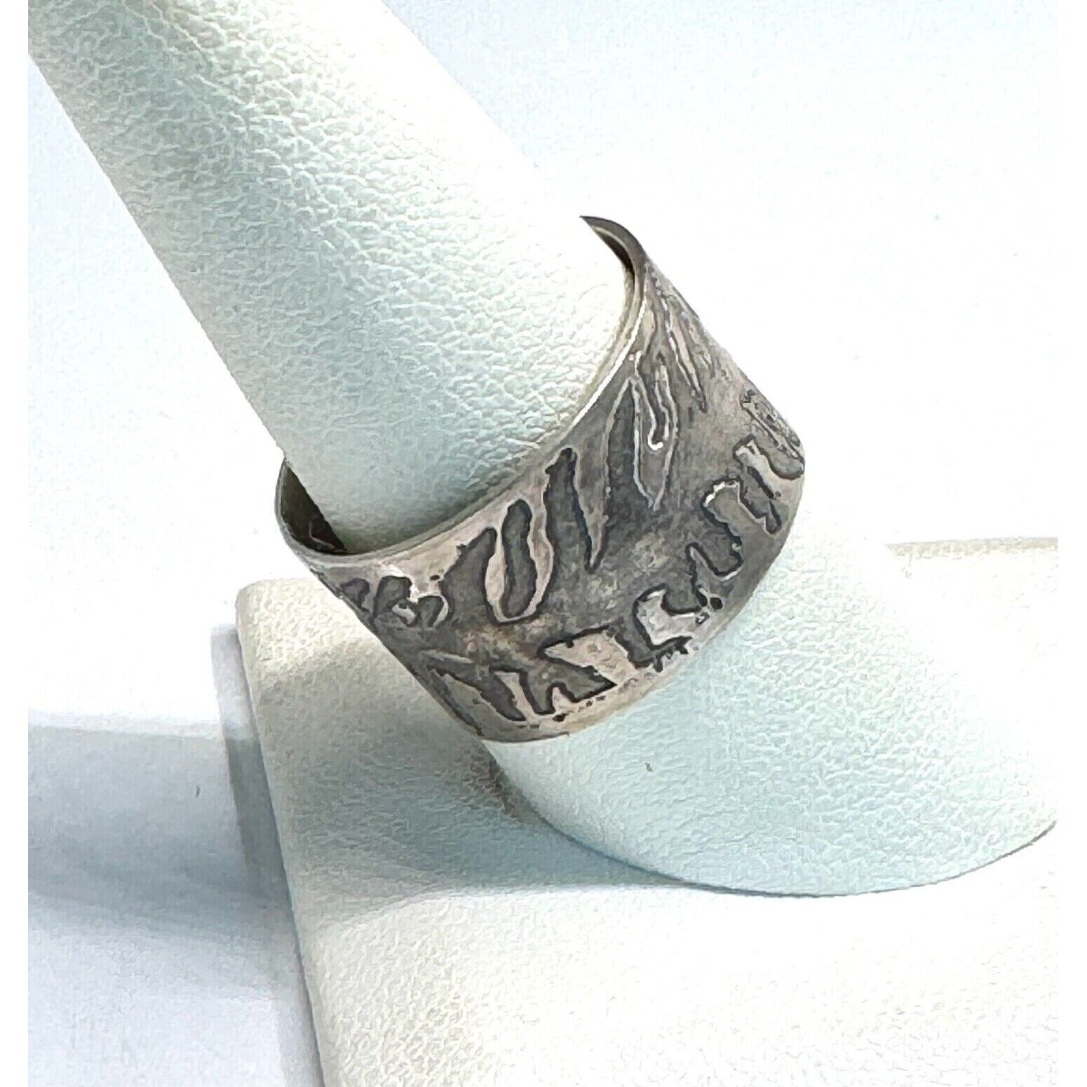 HANDMADE 925 STERLING SILVER ACID ETCHED ABSTRACT DESIGN BAND RING SIZE 9 SKY