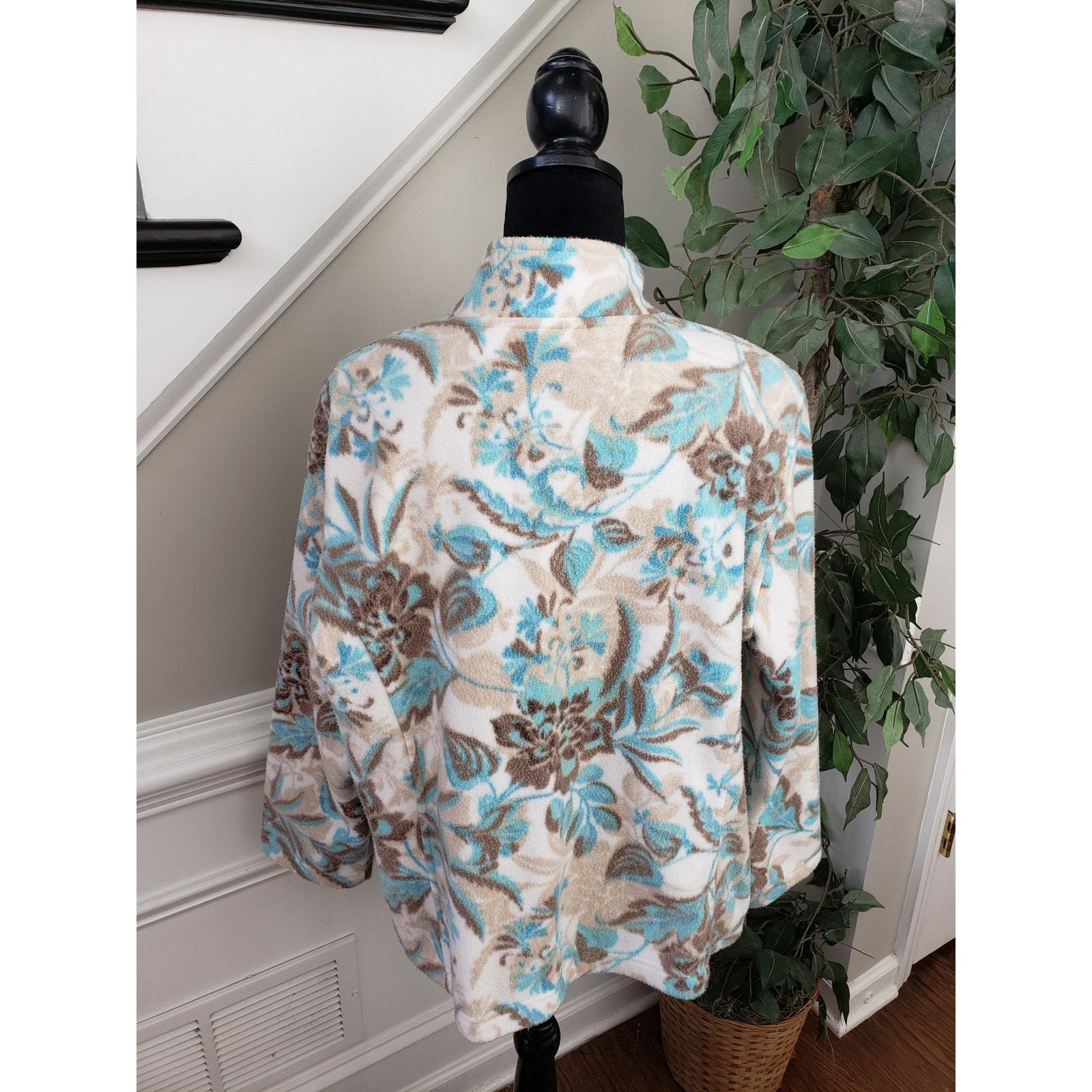 Women's Alfred Dunner Jacket Multicolor Size PL Floral Fleece Front Full Zip