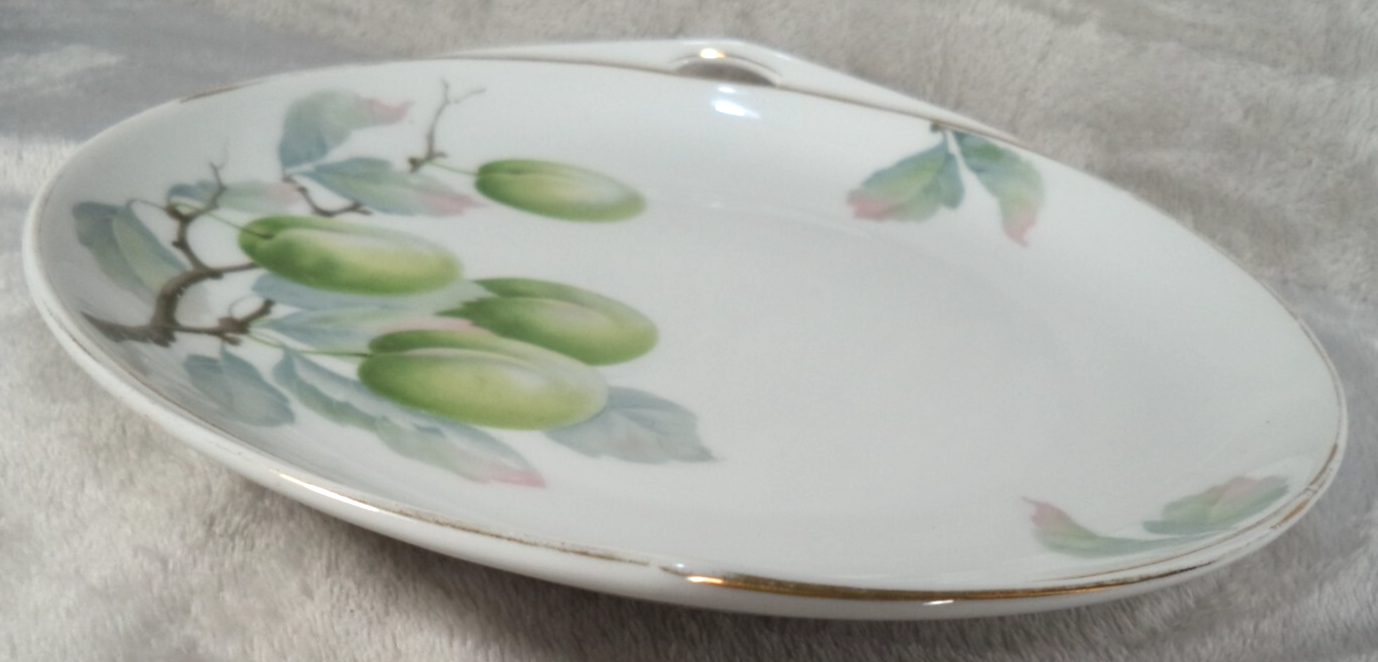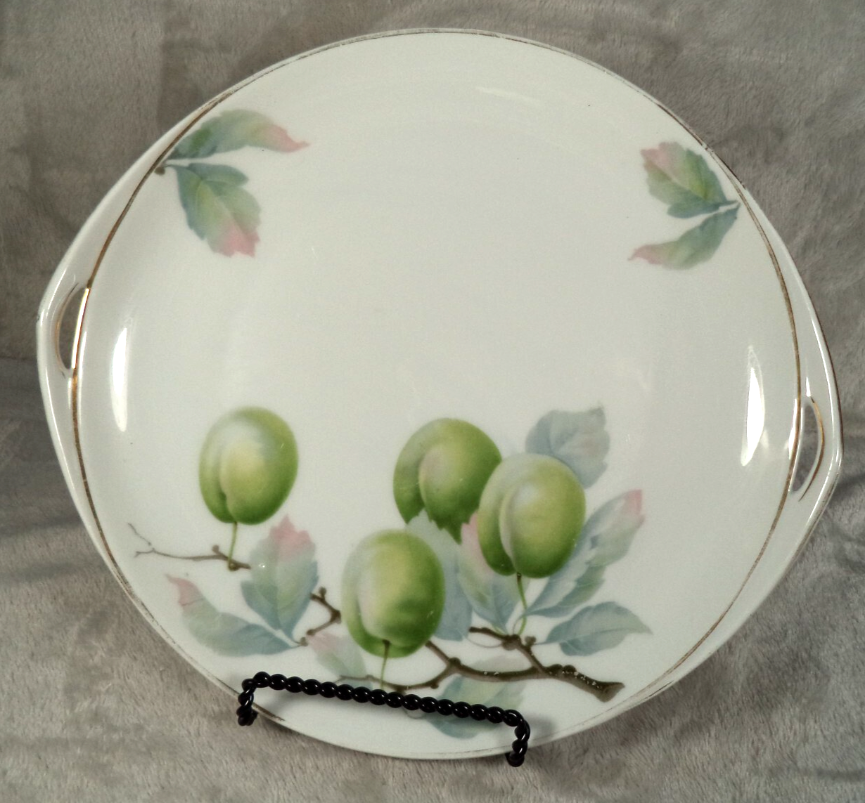 Rosenthal Bavaria Donatello Cake Dessert Salad Plate Handles Green Plums Leaves