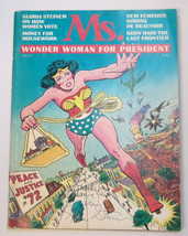 Steinem featured a costumed Wonder Woman on the first independently issued volume with an appreciative essay (including color comic pages) about the character. "Steinem was offended that the world's most famous female superhero had had her powers removed in the most recently published comics."