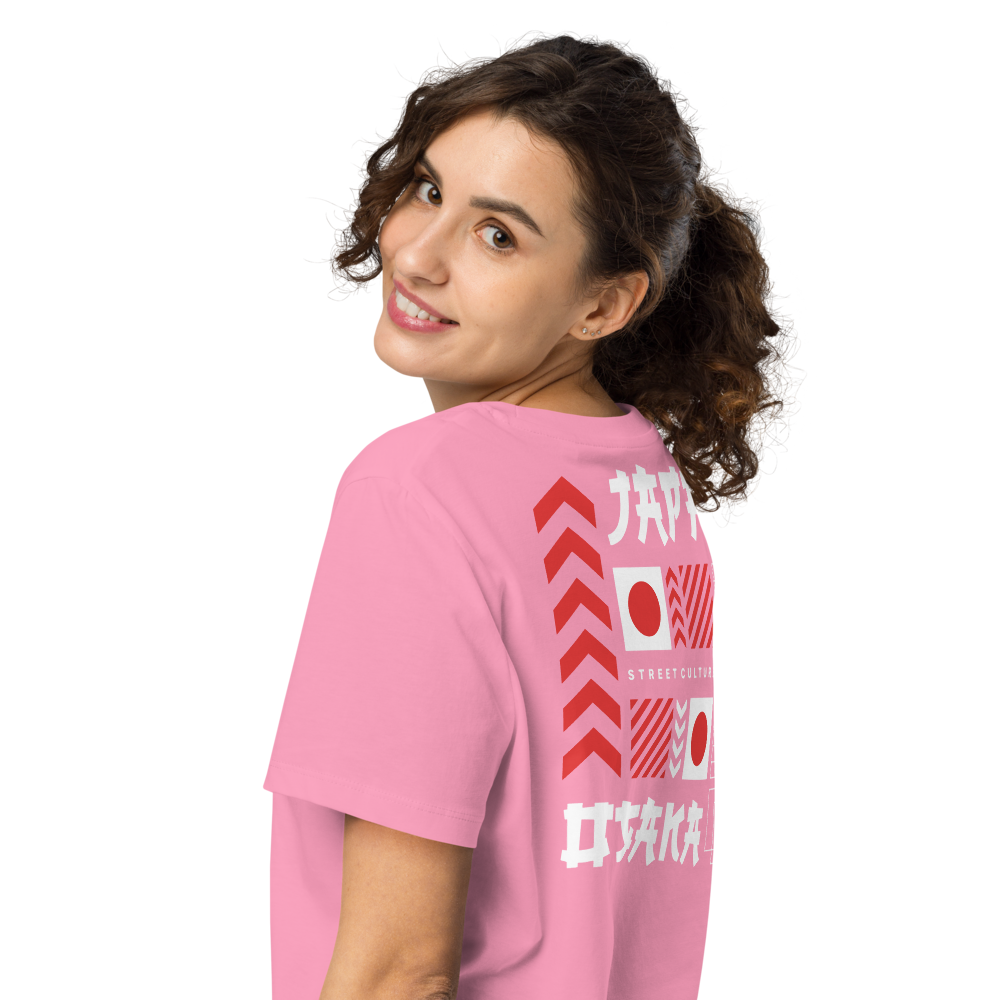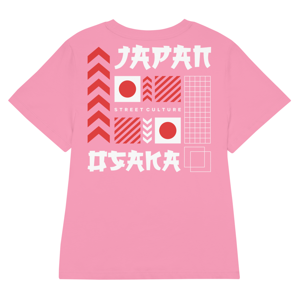 Women’s Organic Ribbed Neck T-Shirt – Osaka Back Print (Bubble Pink)