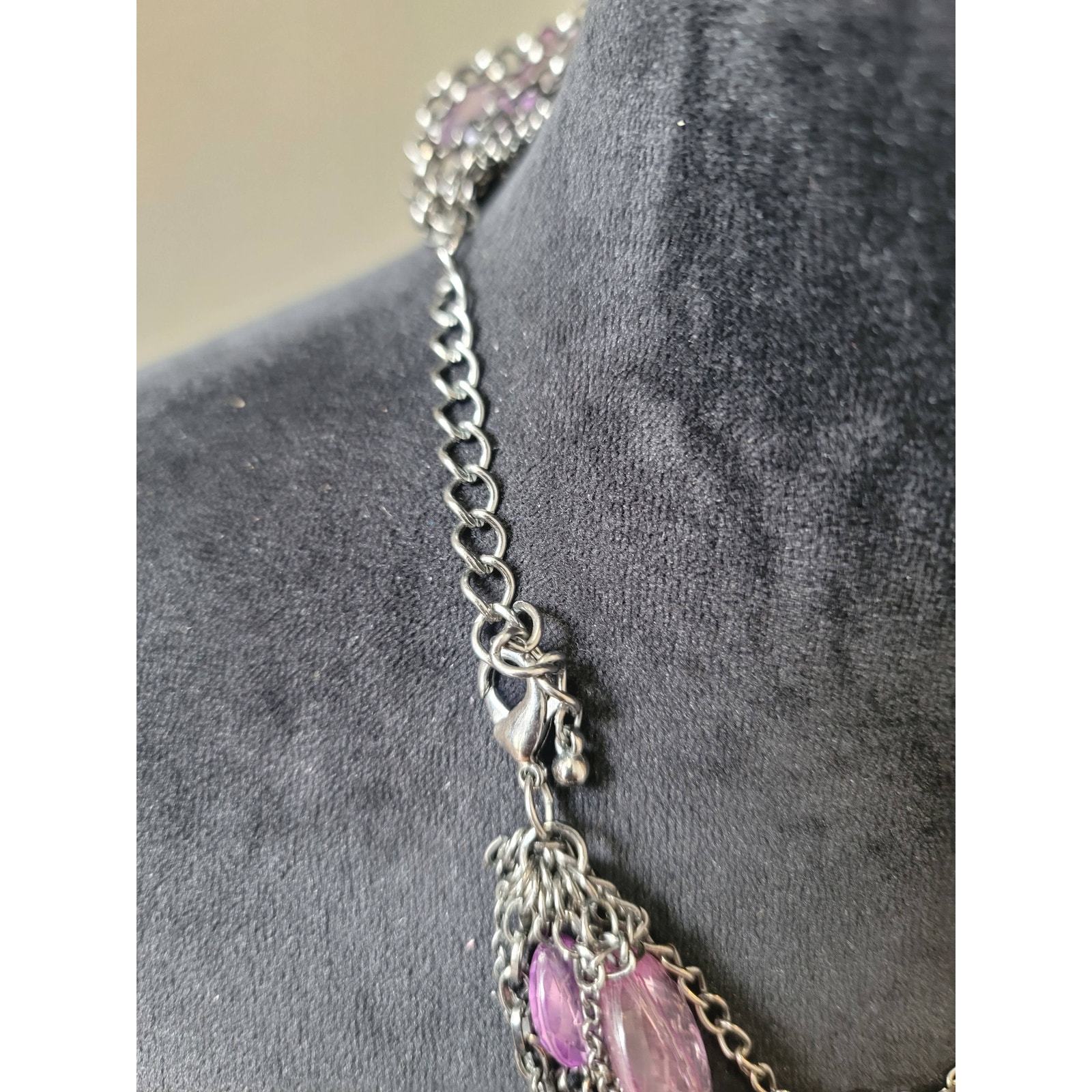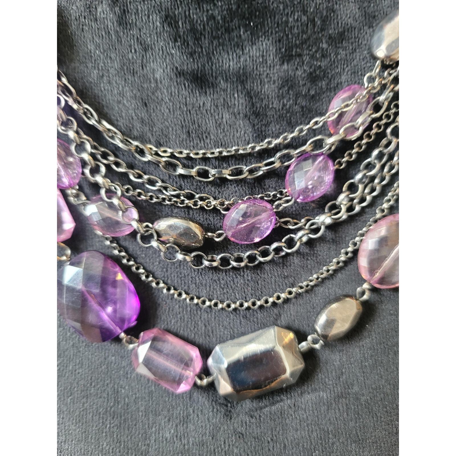 Women's Statement Multi Strand Purple Beaded Necklace Lobster Clasp Layered