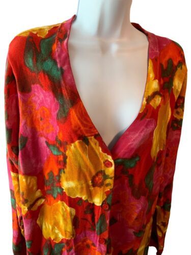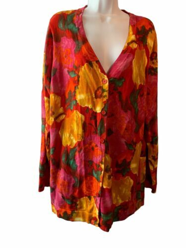 Isaac Mizrahi Cardigan Sweater Size XL Floral Bold Flowers Garden Botany Roses