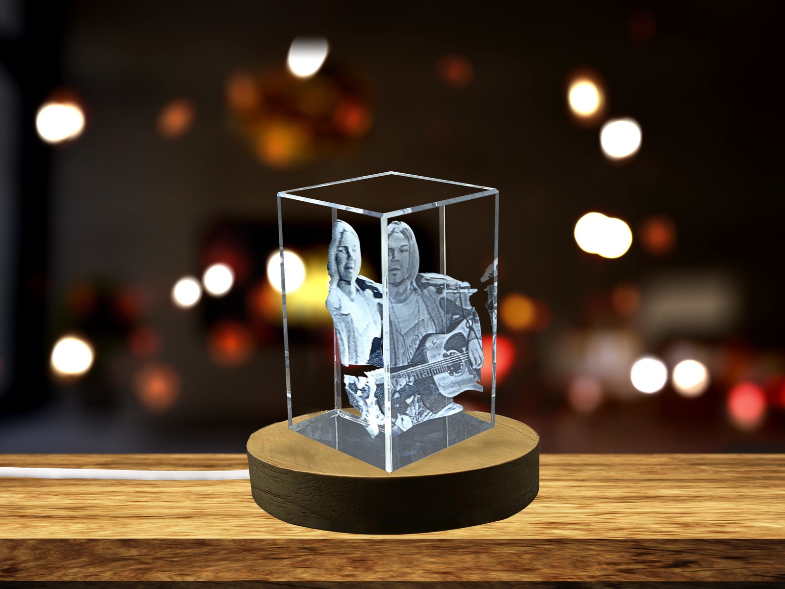 LED Base included | Kurt Cobain - A Grunge Icon Immortalized in 3D Engraved