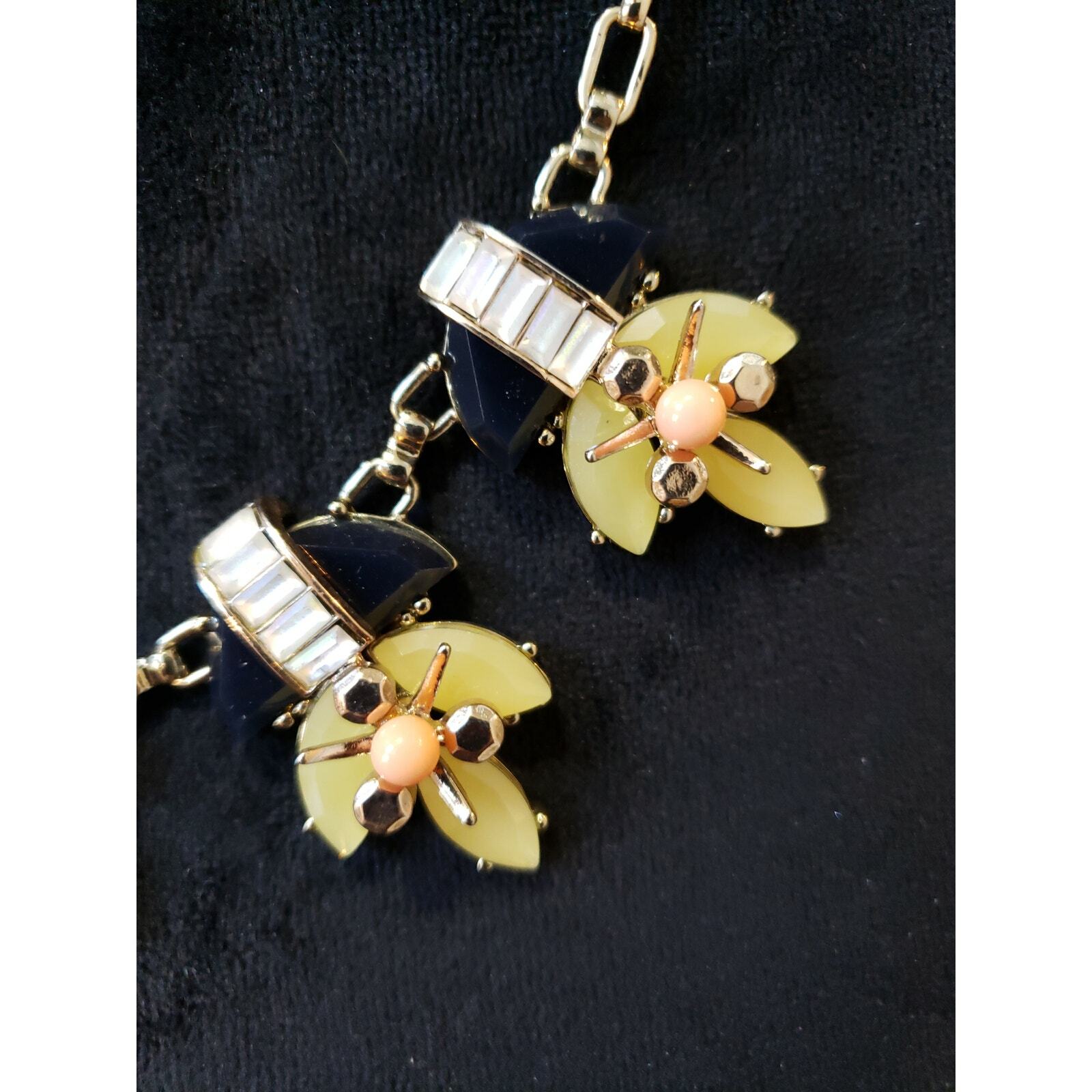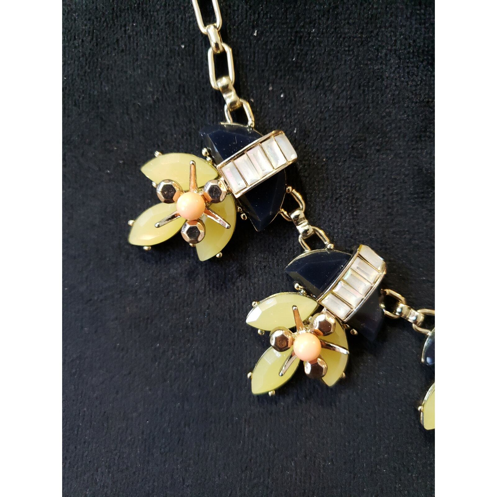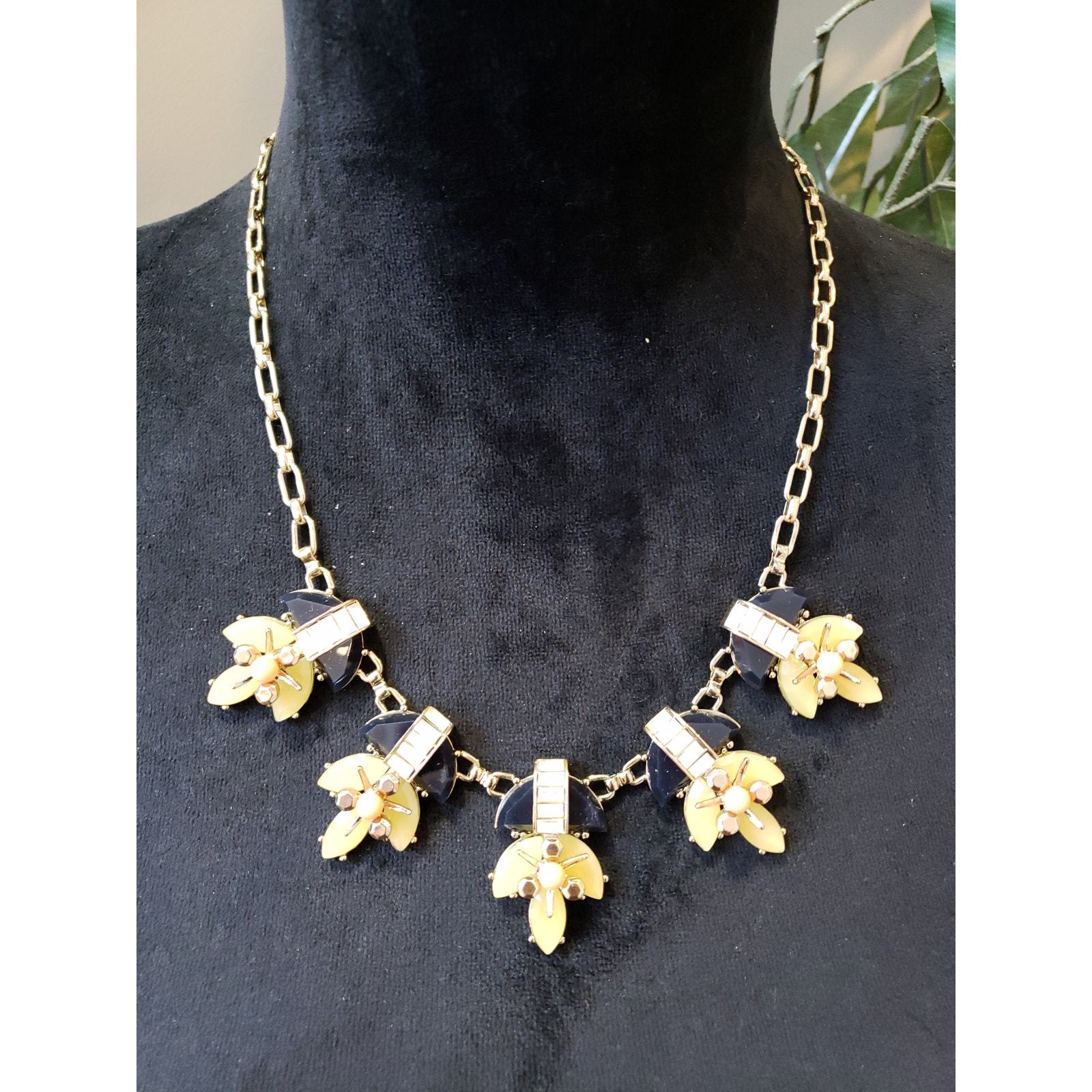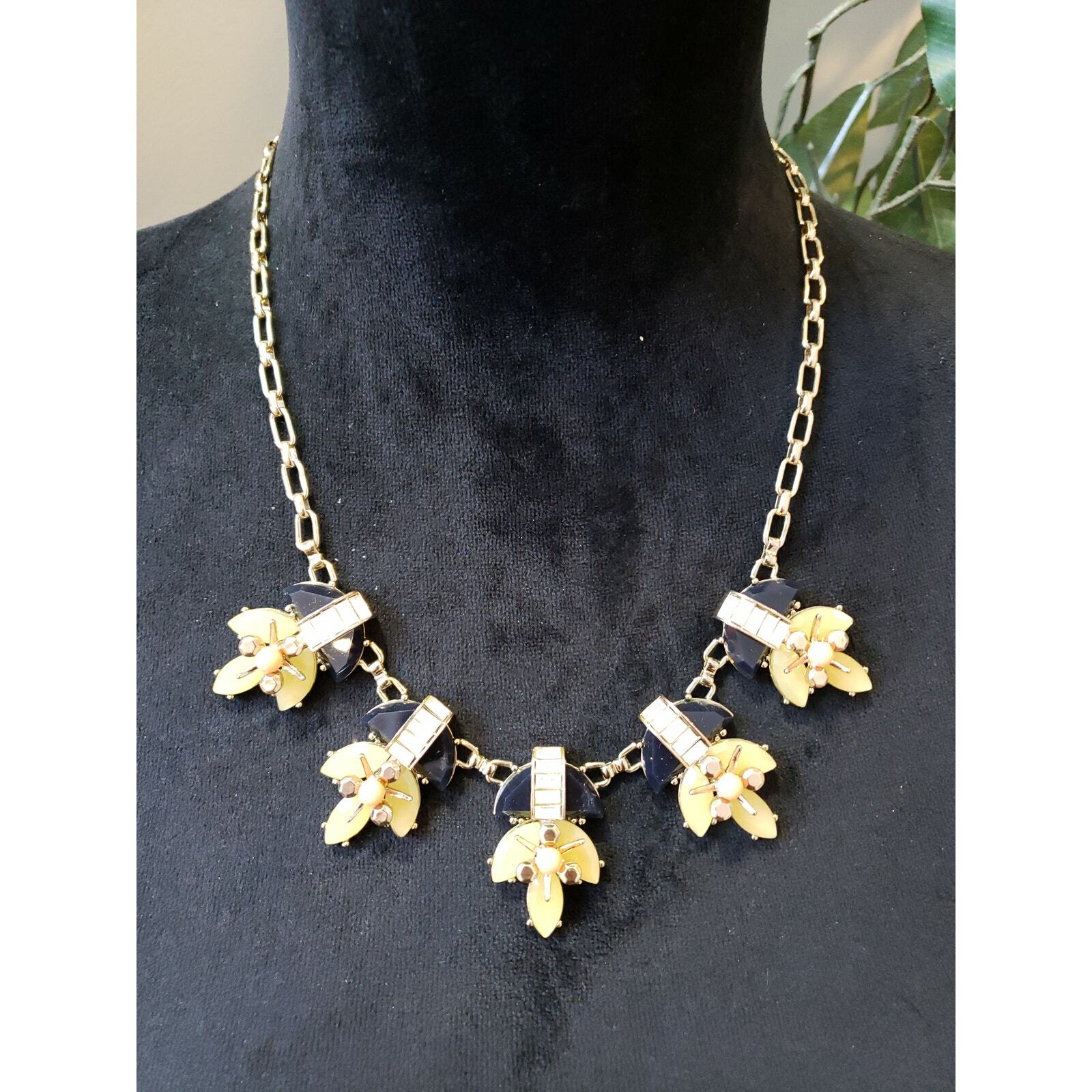 Women's Gold Tone Floral Statement Necklace Black Yellow Beaded Chain T Lock