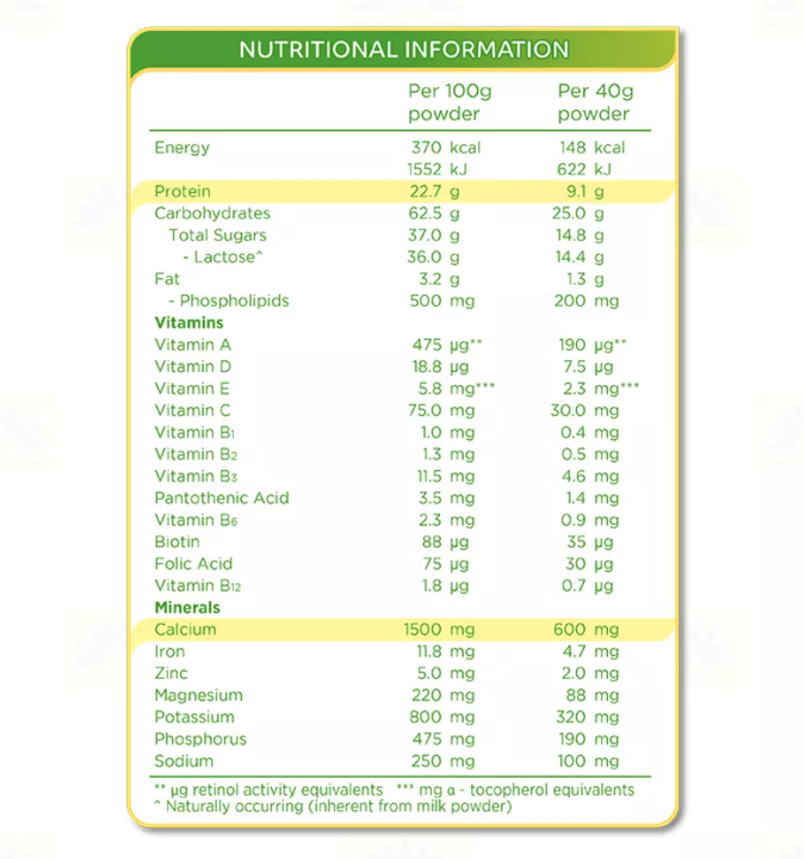 4 tablespoon (29g) of milk powder to 1 glass (200ml) |