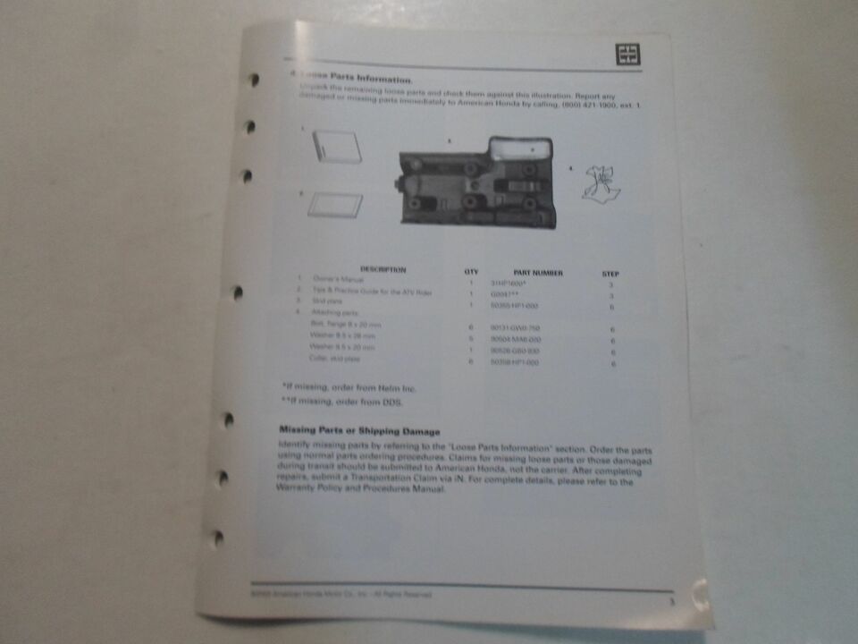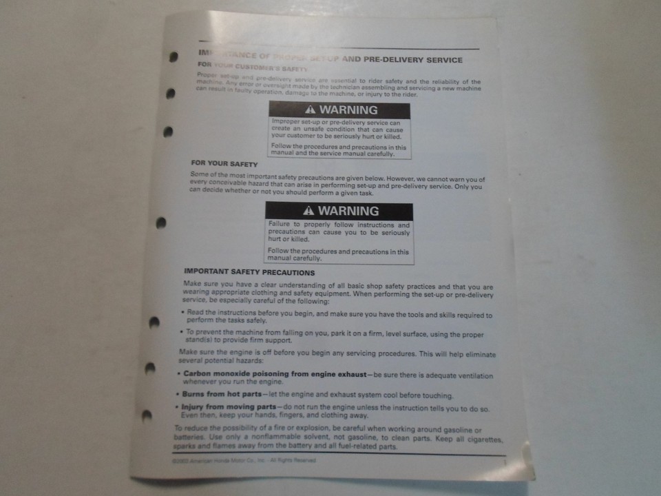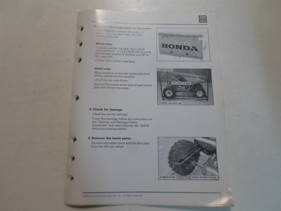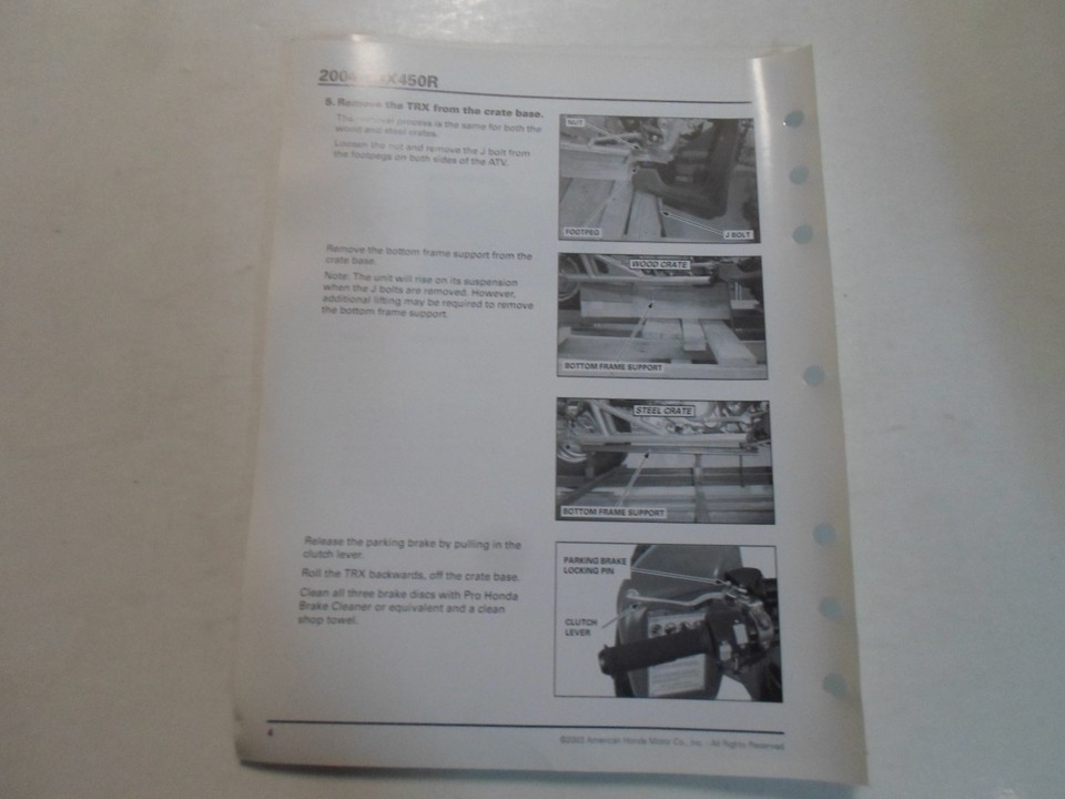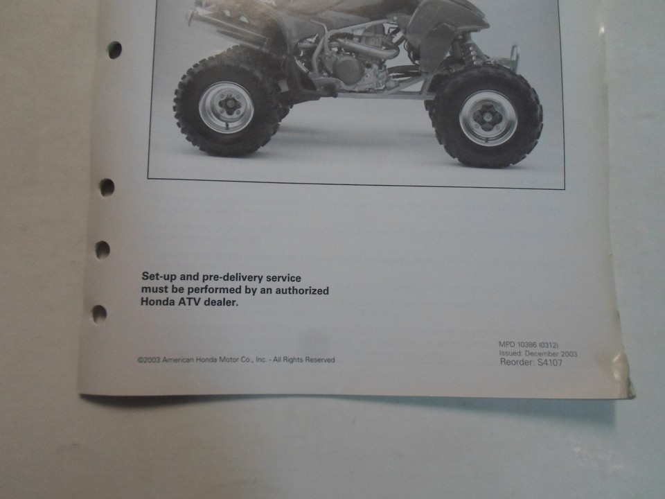 2004 HONDA TRX450R ATV SET UP INSTRUCTIONS MANUAL LOOSE LEAF MINOR STAINS