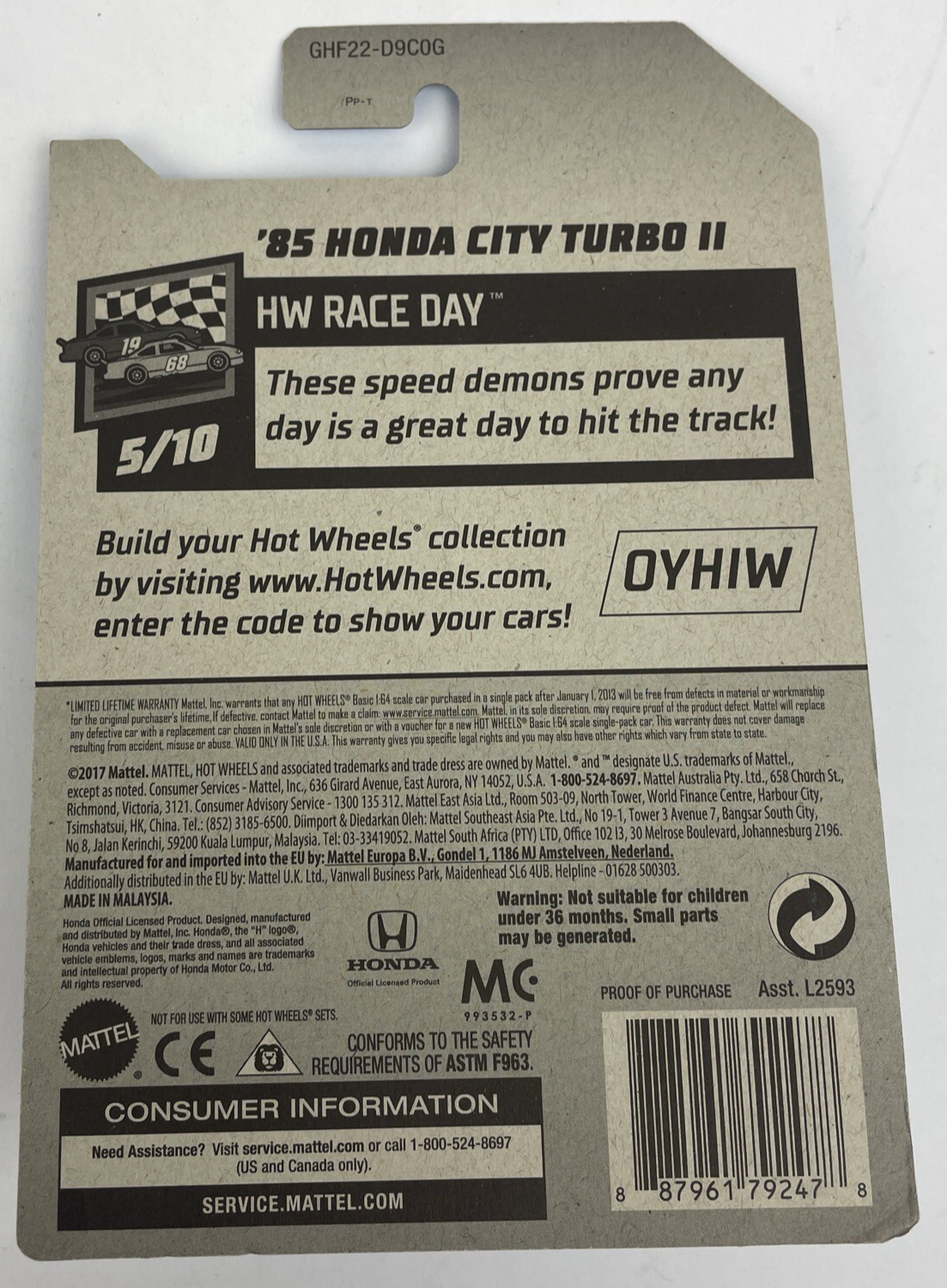 2017 Mattel Hot Wheels - HW Race Day Series - '85 HONdA City Turbo II - RED #85 5/10 11/250
