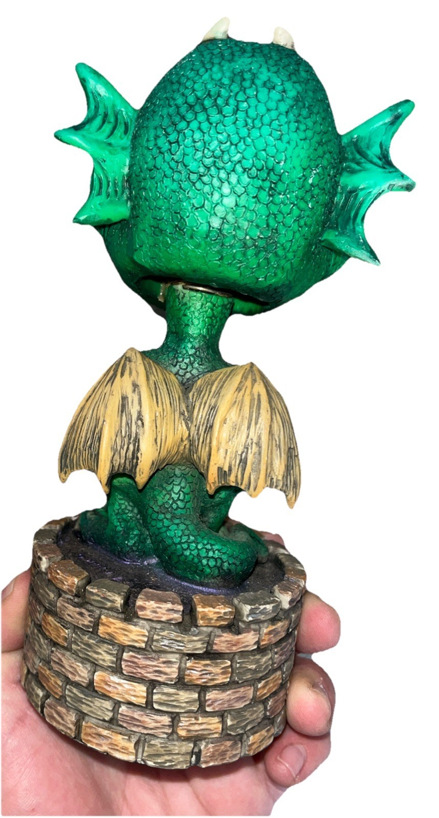 The product is a rare collectible figure from the year 2000, specifically the Adam's Apple Bobbin Heads Dragon 2000 model. This unique item would appeal to collectors looking for rare and distinctive pieces to add to their collection. With its specific release year and model name, it holds a special place in the world of collectibles for those who appreciate limited edition items.
