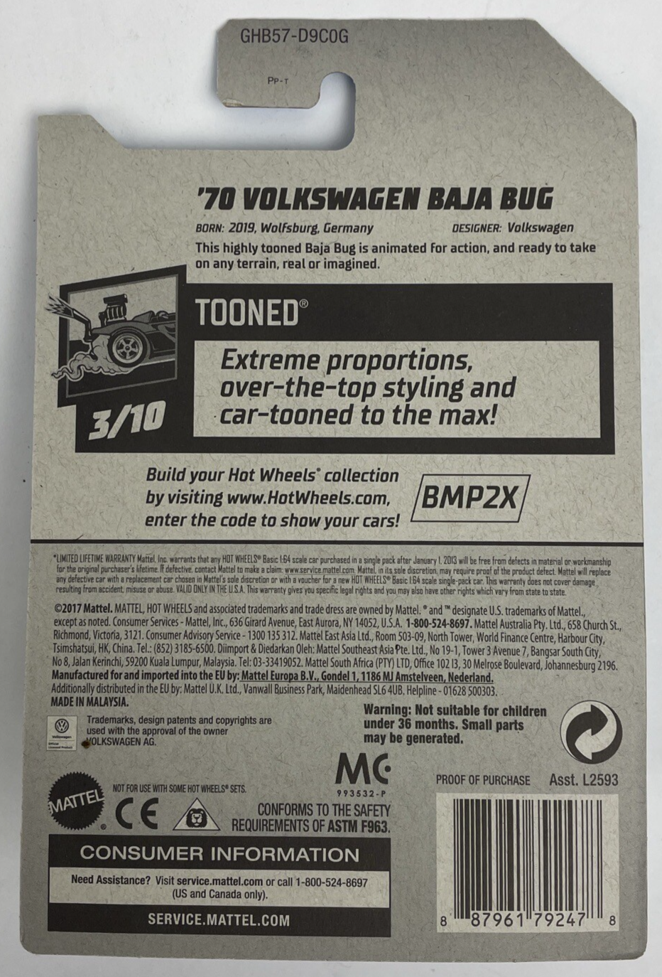 2020 Hot Wheels #126 Tooned 3/10 '70 VOLKSWAGEN BAJA BUG White w / Chrome 3/10