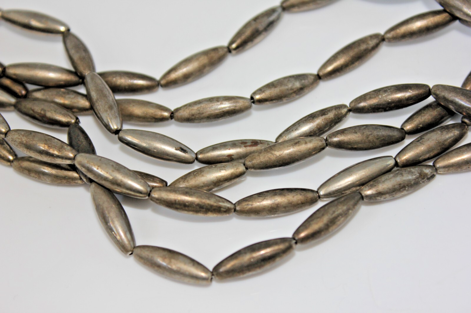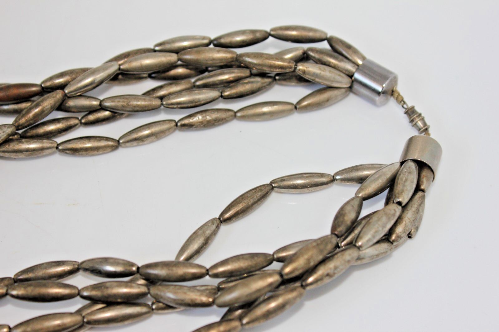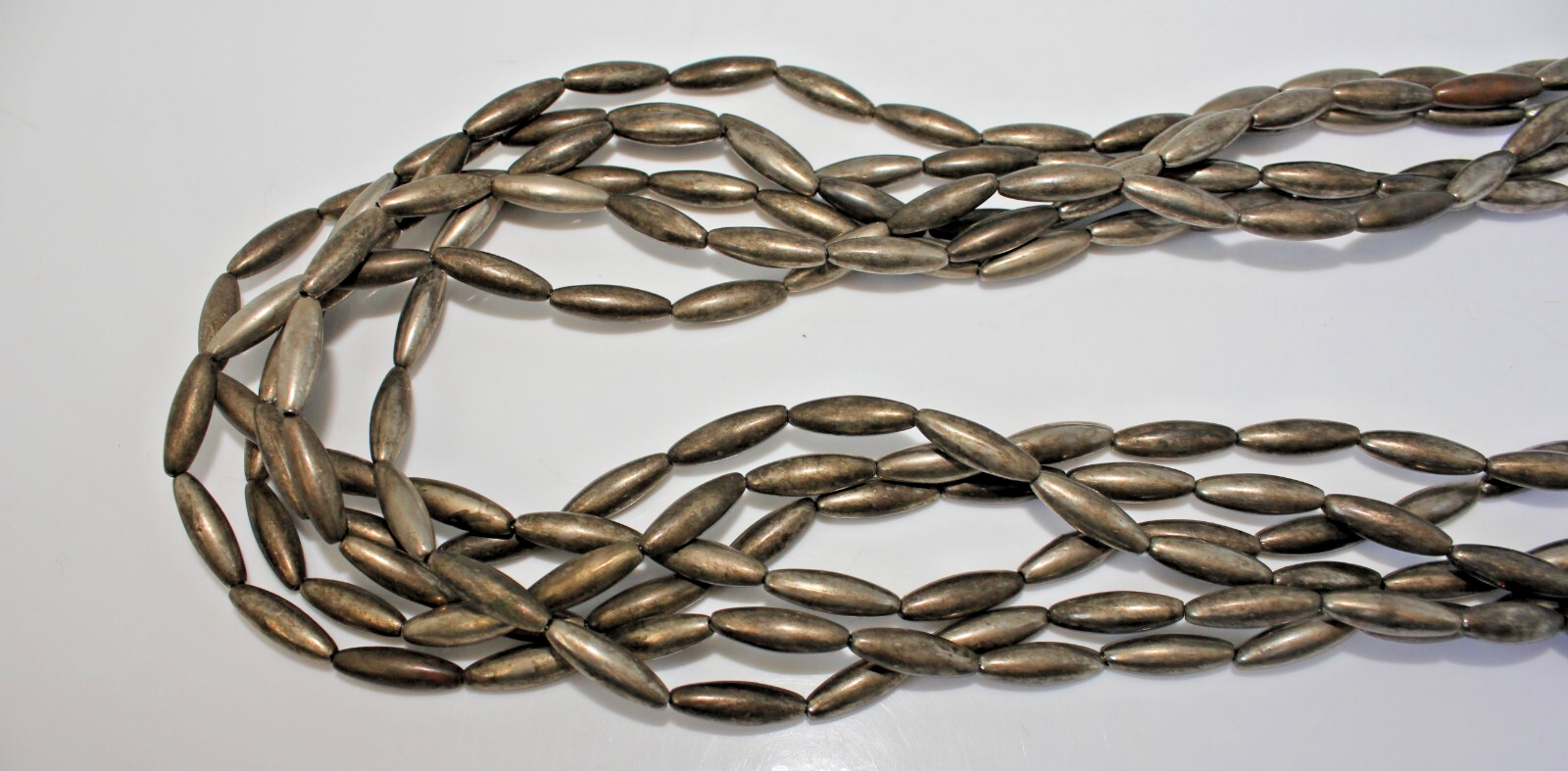 Fun Vintage 30 in Multi-Strand Silver Tone Plastic Oblong Beaded Necklace