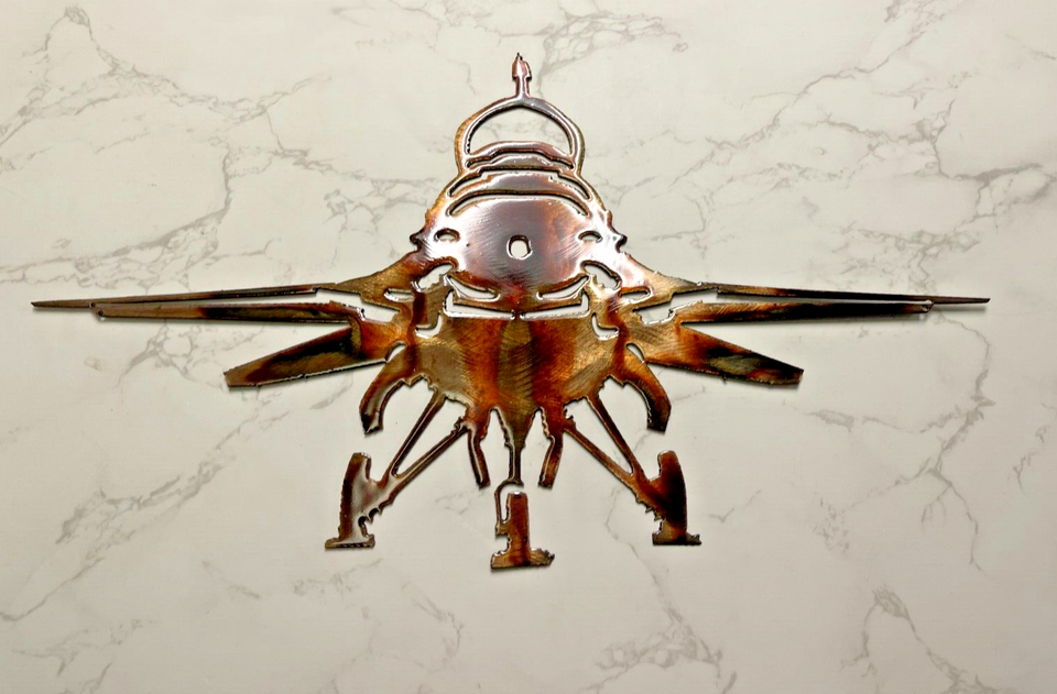 F 16 Fighter Jet Metal Wall Art Plane front view - Copper - 16 1/4" x 9 1/4"