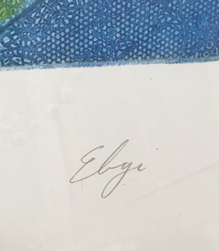 Ebgi is a craftsman and a master printer. He has been considered a visionary whose imagination combines the warmth of sensitive feelings with light and the complexities of life with subtle structure. He is an art technician who skillfully translates rare and delightful concepts onto paper with inks for all to see.