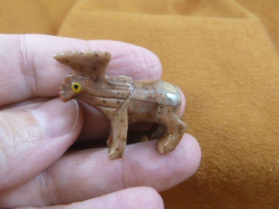(#Y-MOO-NB-25) You are bidding on this cute moose carving, very well done. Carved in Peru of native (spotted TAN GRAY marbled color is natural) soapstone, he stands 1-1/8" tall x 1-3/8" long. New, no defect.