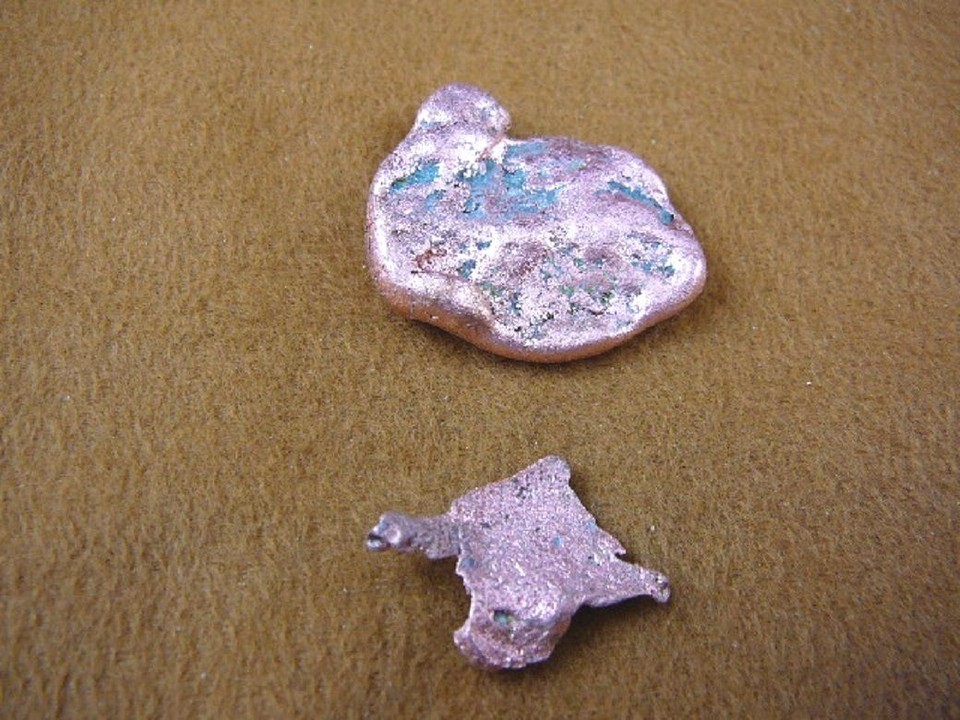 R602-39 Copper solid display 2 nuggets nugget specimen element Cu metal Michigan