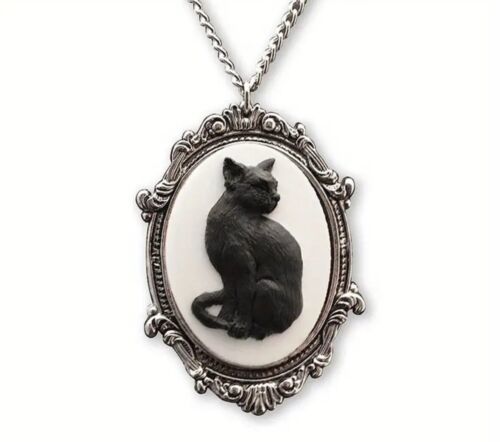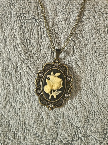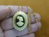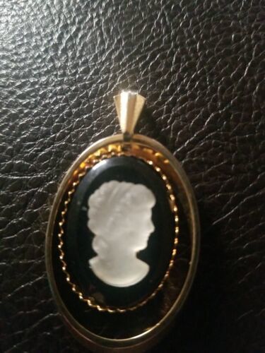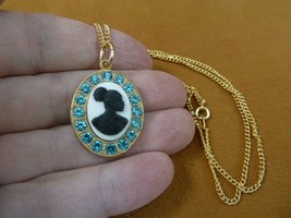 CA30-147) RARE African American LADY black + white CAMEO brass pendant necklace