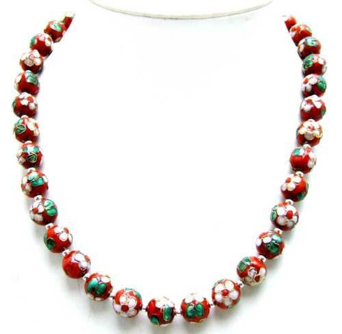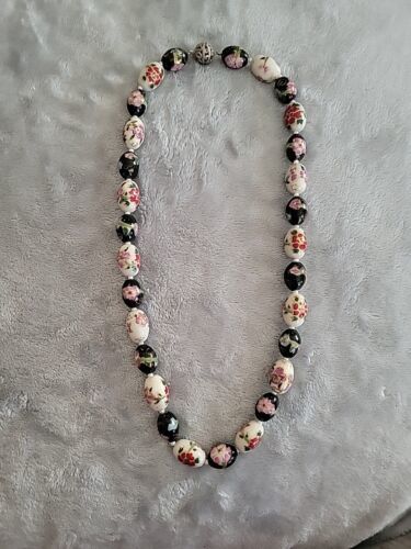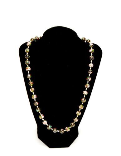 (Internal #V-257-8) You are bidding on a beautiful, handmade cloisonne necklace with White, with 8 mm brass spacer beads. Necklace is made with 18x12 oval cloisonne beads, 20" long with gold safety closure.