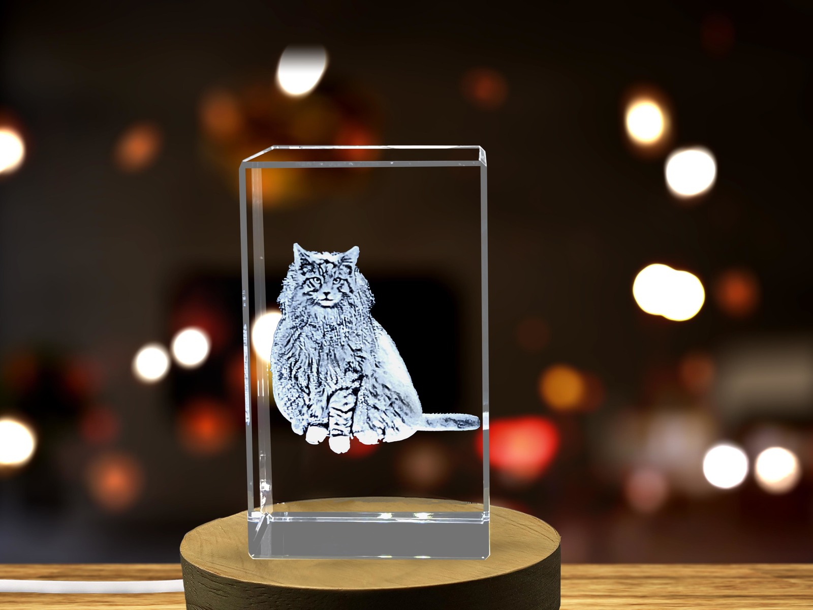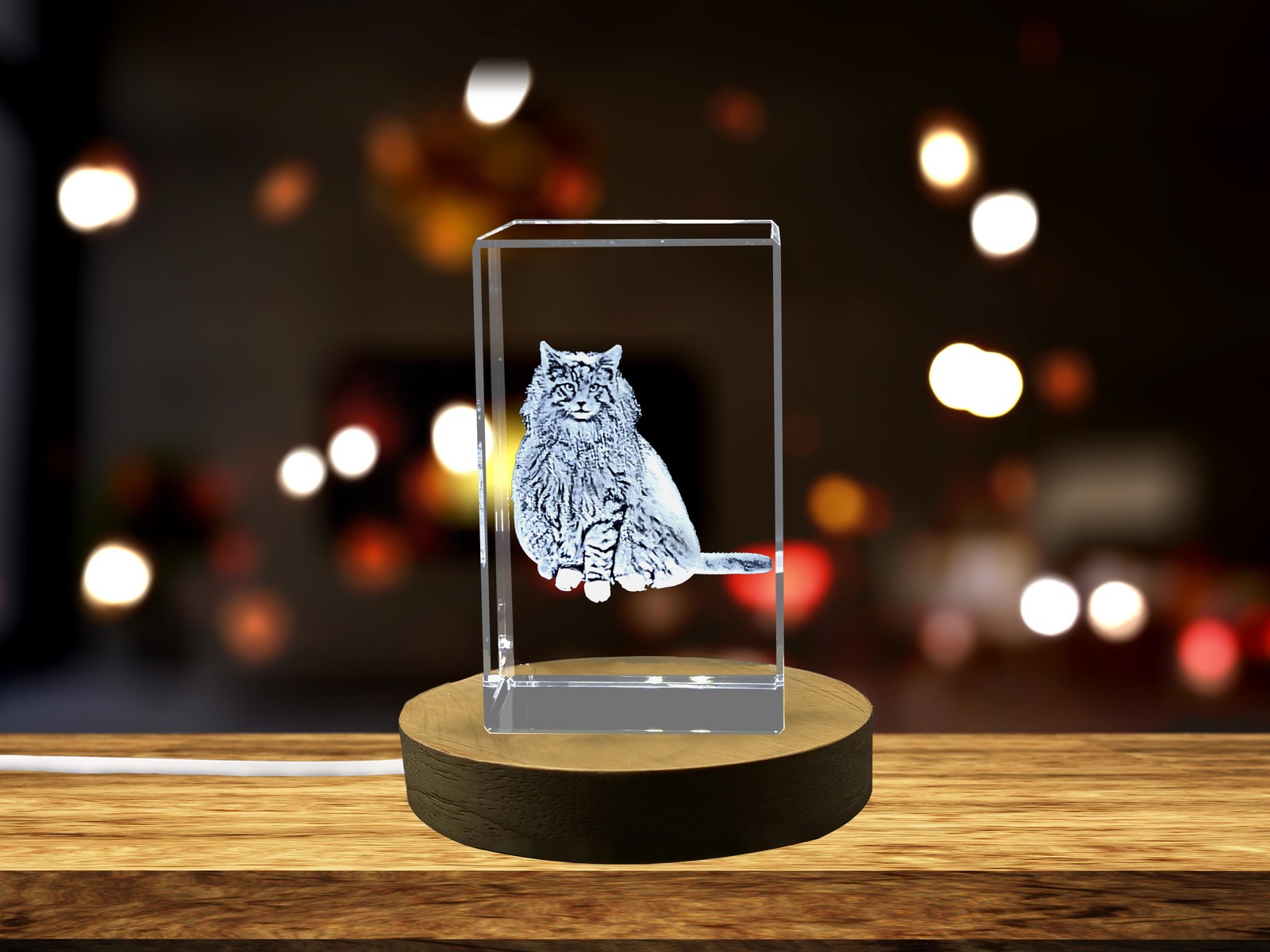 LED Base included | Stunning Norwegian Forest Cat 3D Engraved Crystal Keepsakes